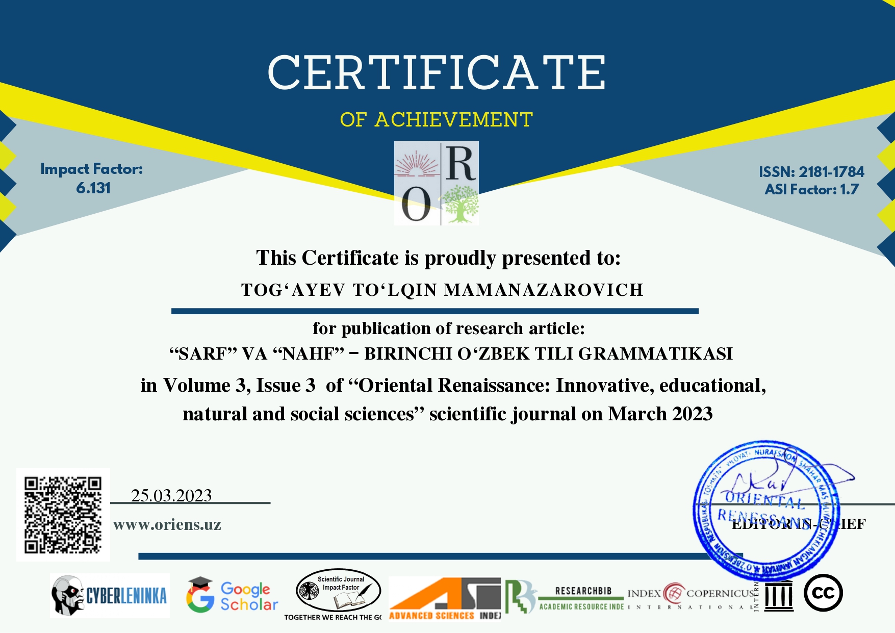“SARF” VA “NAHF” ‒ BIRINCHI O‘ZBEK TILI GRAMMATIKASI
