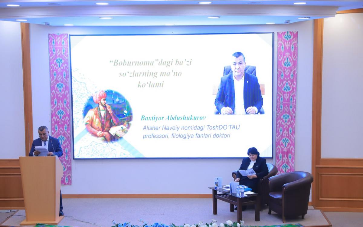 Konferensiyaning yalpi majlisida mahalliy hamda xorijlik yetuk olimlar ma’ruzalar qildi. Jumladan, ToshDO‘TAU professorlari H. Dadaboyev, Z. Xolmanova, B. Abdushukurov, Farhod Rahimi, shuningdek, Turkiya, Tojikiston, Qirg‘iziston, Qozog‘iston va Ozarbayjondan tashrif buyurgan olimlar Tanju Seyhan, Kemal Yavuz Ataman, Muhterem Saygin, Muso Olimdjonov, Baqtigul Temirova, Mehmet O‘zeren, Elnura Huseynova kabi mutaxassislarning chiqishlari tinglandi. Ma’ruzalarda Zahiriddin Muhammad Boburning adabiy va ilmiy merosi, lingvistik qarashlari, turkiy adabiy til rivojidagi o‘rni, “Bobur asarlari lug‘ati”ning ilmiy-ma’rifiy ahamiyati hamda boburshunoslikdagi zamonaviy tadqiqotlar yoritildi.