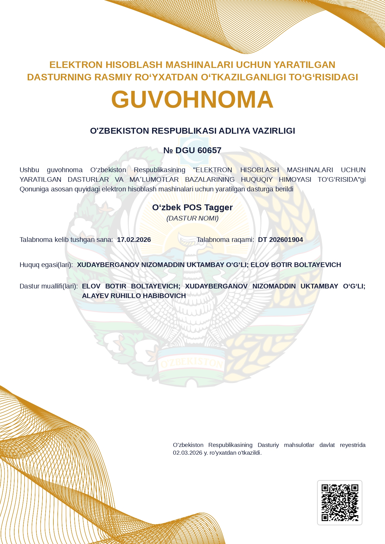 A Morphological Tagging Model of the Uzbek Language in the Universal Dependencies Format