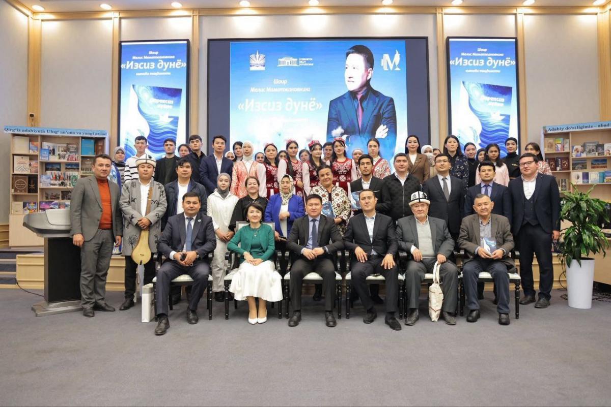Alisher Navoiy nomidagi Toshkent davlat o‘zbek tili va adabiyoti universiteti hamda O‘sh davlat universiteti hamkorligida 2025-yil 25-noyabr kuni O‘zbekiston Milliy kutubxonasida taniqli qirg‘iz shoiri, o‘z ijodi bilan turkiy adabiyot muxlislariga yaxshi tanish bo‘lgan Melis Mamatjonovning “Izsiz dunyo” nomli yangi she’riy to‘plami taqdimoti tantanali tarzda o‘tkazildi.