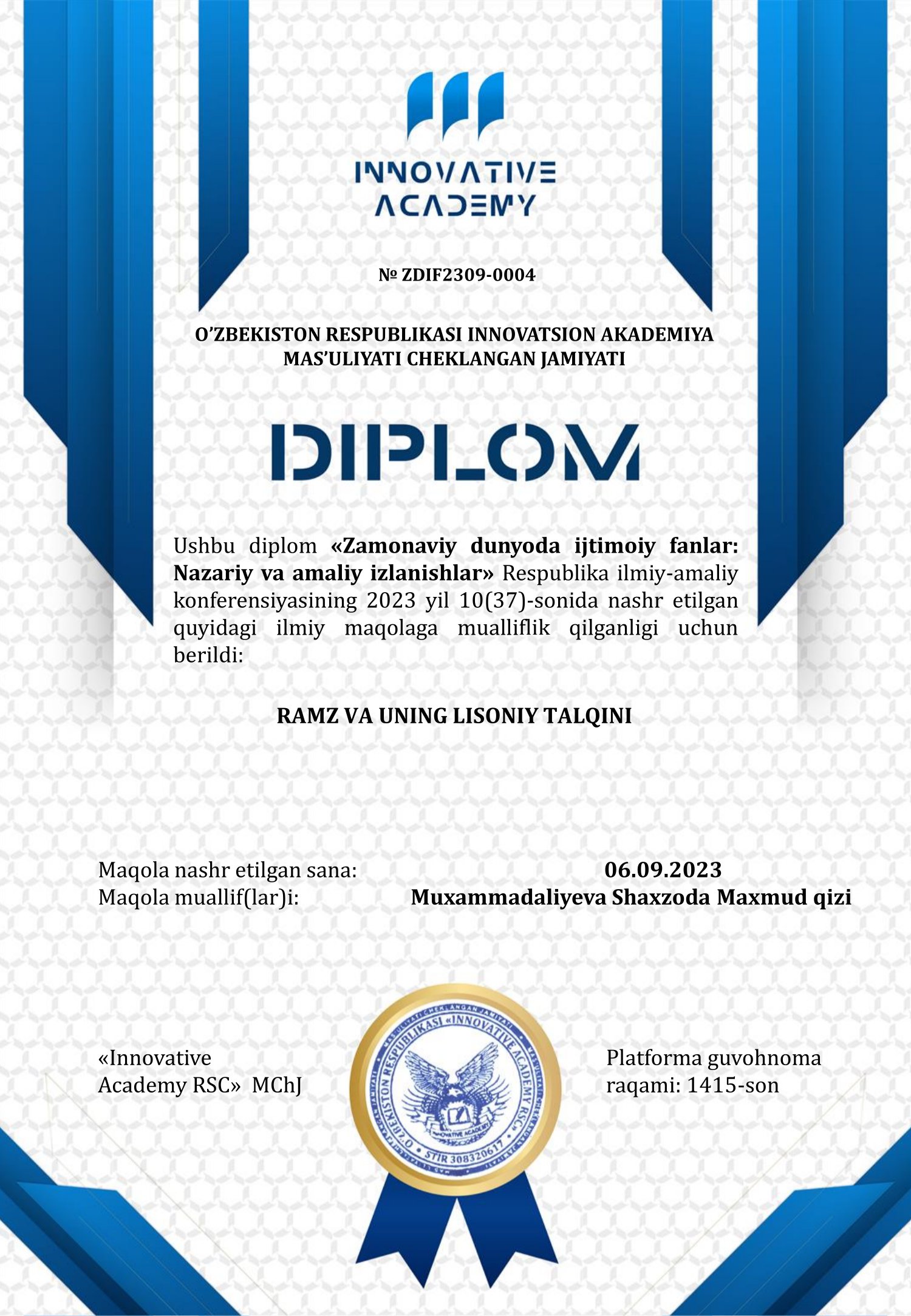 Muhammadaliyeva Shahzoda Mahmud qizi