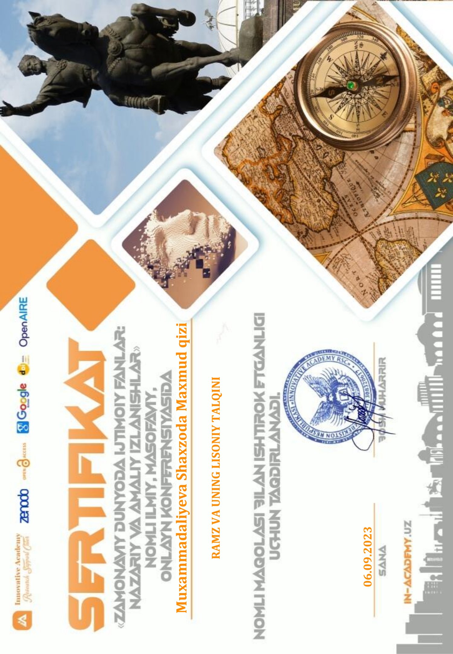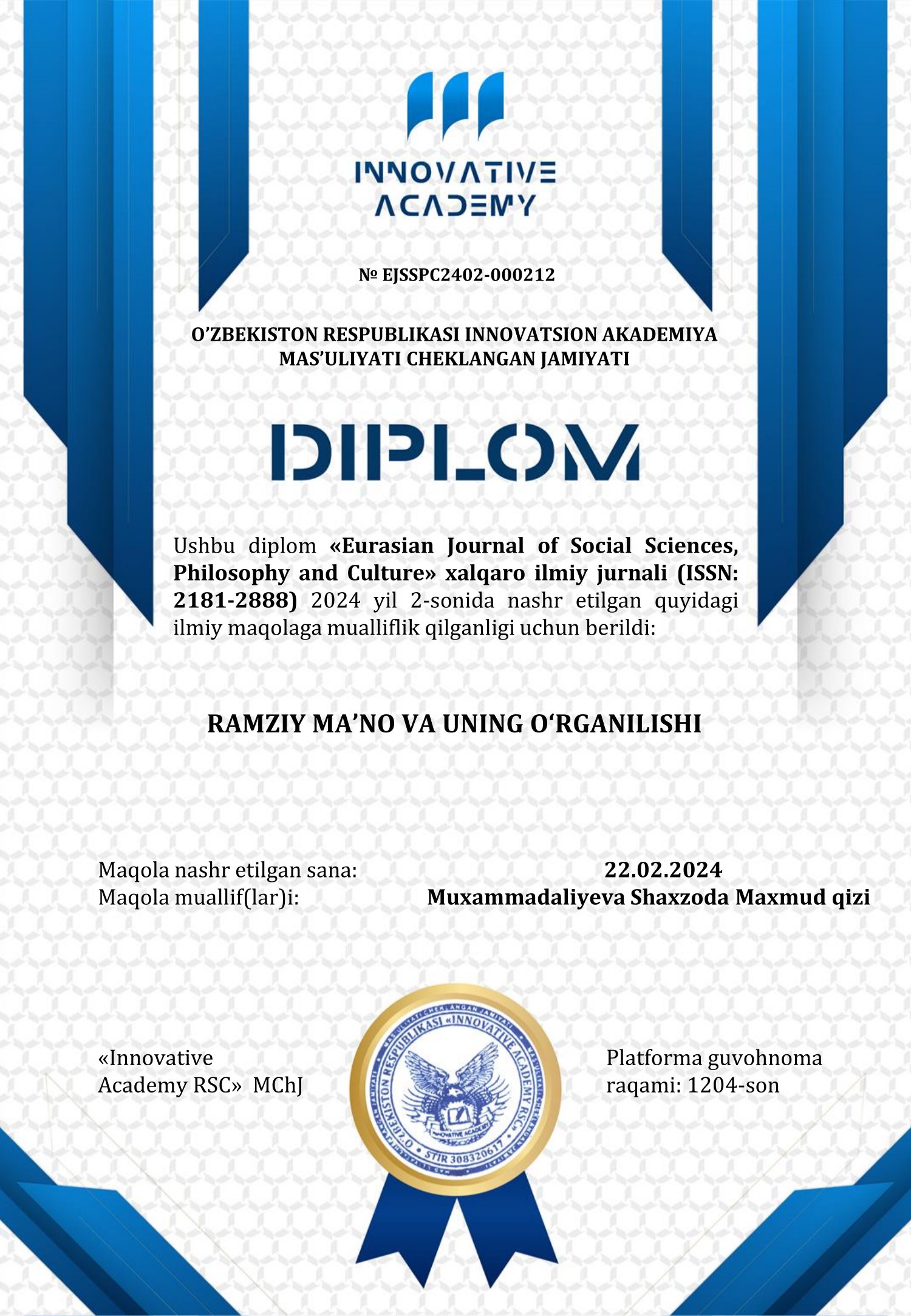 O‘qituvchi. Alisher Navoiy nomidagi Toshkent davlat o‘zbek tili va adabiyoti universiteti. O‘zbek tili va adabiyoti kafedrasi.
