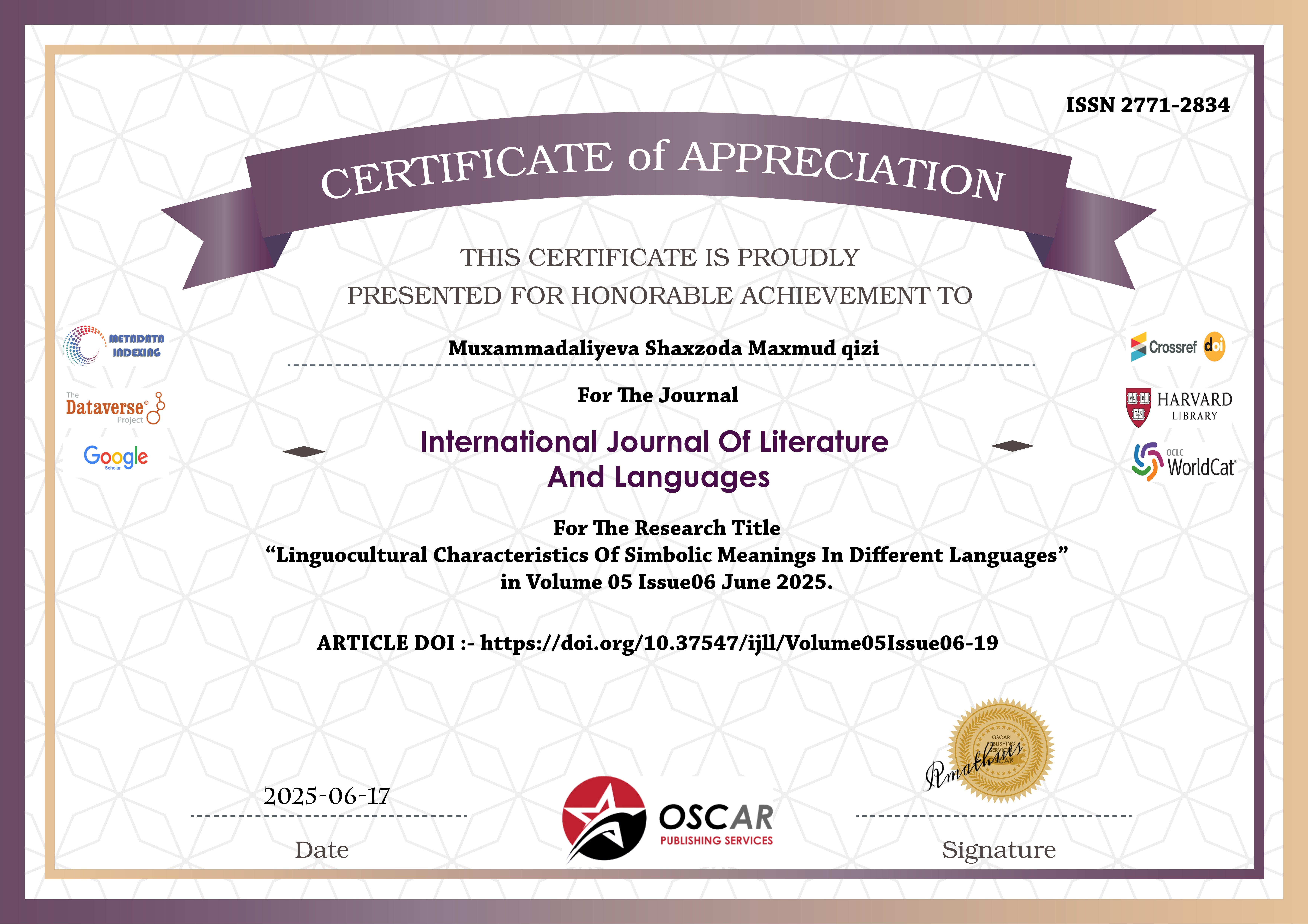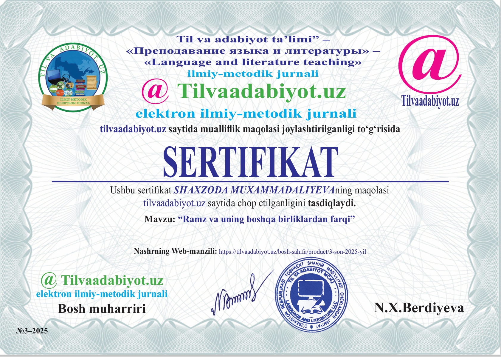 O‘qituvchi. Toshkent viloyati Yangiyo‘l tumani 26-maktab. Ona tili va adabiyot fani.