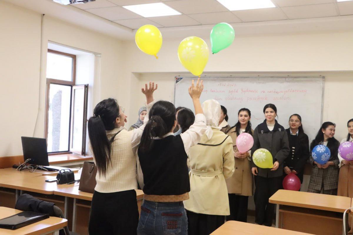 Universitetimizda talabalarning ruhiy salomatligini mustahkamlash, ularning ichki imkoniyatlarini ro‘yobga chiqarish hamda sog‘lom psixologik muhitni shakllantirish maqsadida navbatdagi psixologik trening o‘tkazildi. Mazkur tadbir O‘zbek tili va adabiyoti yo‘nalishi talabalari ishtirokida universitet psixologi Nozima Narziyevna tomonidan tashkil etildi.