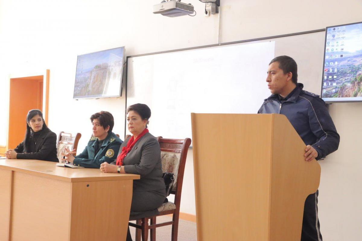 Davra suhbatida Universitet xotin-qizlar maslahat kengashi raisi, rektor maslahatchisi O. Jamoldinova, Yakkasaroy tuman inspektori A. To‘raqulov, Yakkasaroy tumani IIO FMB 3-son IIB XPB OTM PKI katta leytenant G. T. Matisakova, O‘zbekiston davlat xoreografiya akademiyasi Xotin-qizlar masalalari bo‘yicha rektor maslahatchisi, akademiya tyutori M. Jo‘rayeva hamda psixolog N. To‘xtayeva ishtirok etdilar.
