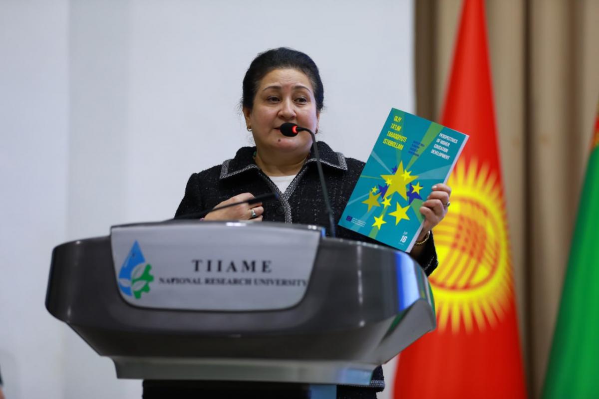Aziza Abdurahmonova, Head of the National Erasmus+ Office (NEO) in Uzbekistan, spoke about the Erasmus+ program and its projects in the country, underscoring their role in enhancing the higher education system. She detailed the achievements, best practices, and the impact of these projects in advancing educational reforms.
