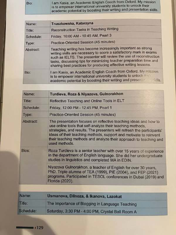Senior Lecturers of the TSUULL English Language Department Ms. Gulnorakhon Niyazova and Ms. Roza Turdieva during the Conference sessions talked about the methods, techniques and means of reflective teaching ideas and gave examples from their own research, discussed and compared similarities and differences in teaching techniques, and showed ways to develop and motivate students in the classroom.