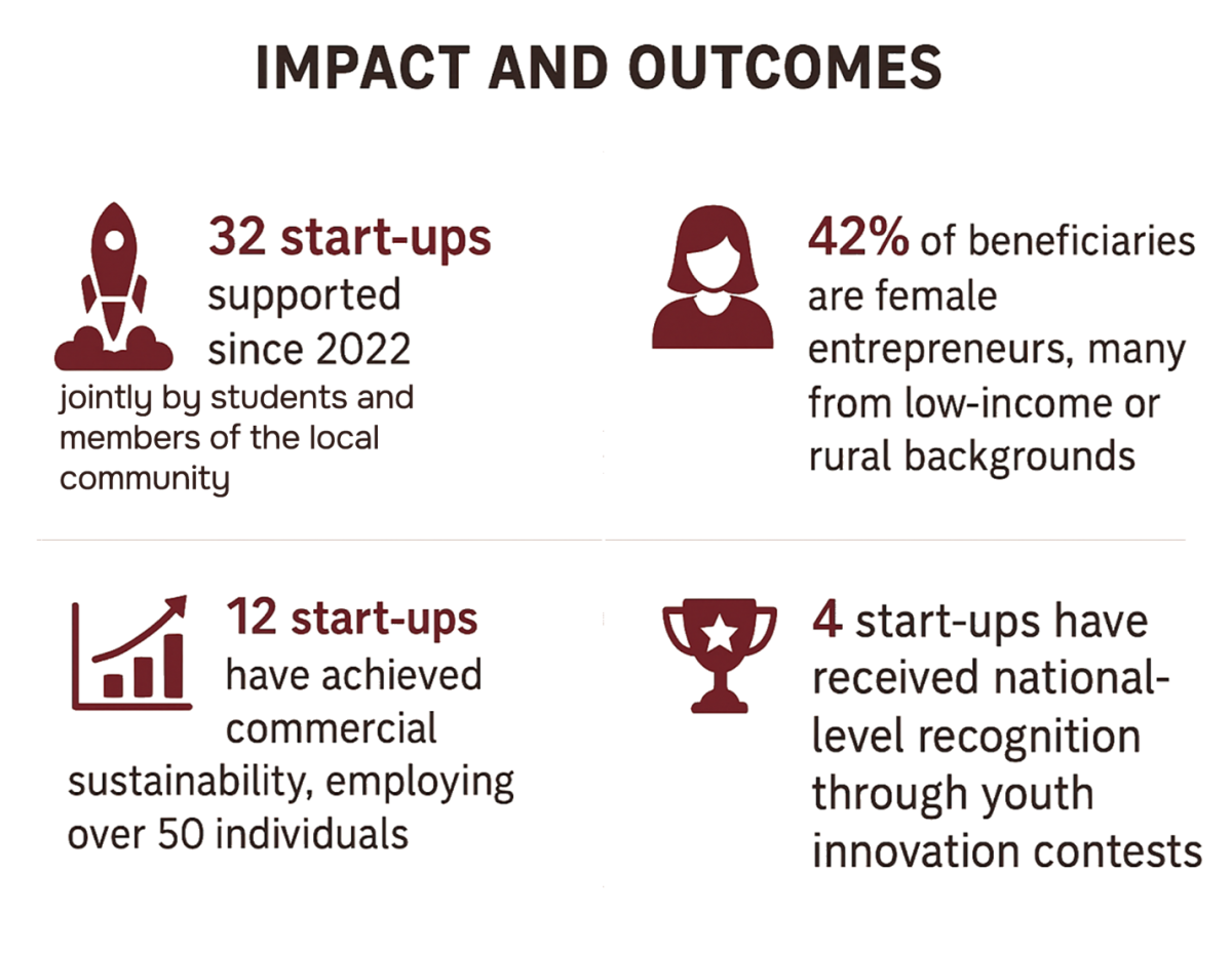 TSUULL provides systematic assistance to the local community in supporting the start-up and growth of financially and socially sustainable businesses through a comprehensive set of educational programmes and institutional resources. The University operates a dedicated Start-Up Support Hub, which serves as a community-oriented platform offering entrepreneurship education, training workshops, mentorship programmes, business incubation, expert consultations, and access to university facilities. | In 2024, TSUULL allocated 250,000,000 UZS to strengthen its start-up assistance programmes, enabling the incubation of projects in the fields of education, language services, creative industries, culture, and IT technologies. To date, the initiative has supported more than 32 community-based start-ups, several of which have grown into self-sustaining micro-enterprises that continue to generate income and employment at the local level. These activities clearly demonstrate TSUULL’s institutional commitment to SDG, showing how the University provides the local community with equitable access to education, entrepreneurship resources, training, mentorship, and facilities that directly contribute to poverty reduction, inclusive economic development, and the creation of sustainable livelihoods. TSUULL’s model illustrates how a university can function as a catalyst for local socio-economic transformation, empowering communities through education-driven innovation and shared prosperity. |