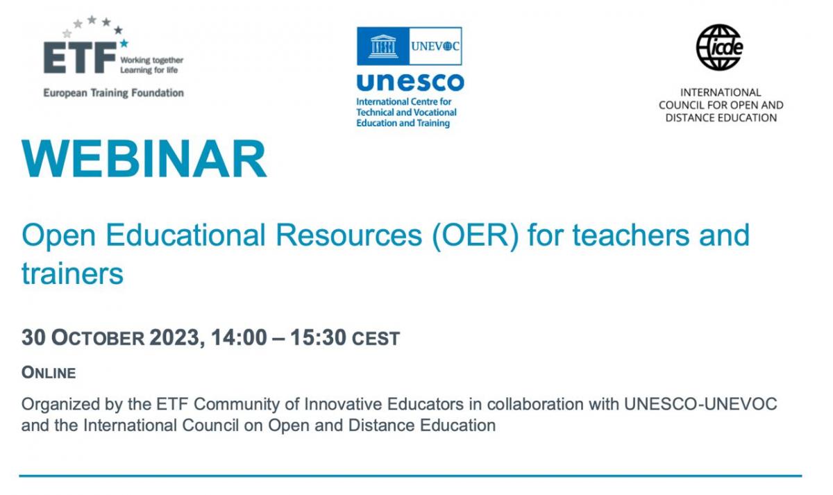 Upcoming Webinar ‘Open Educational Resources (OER) for Teachers and Trainers’, 30 October