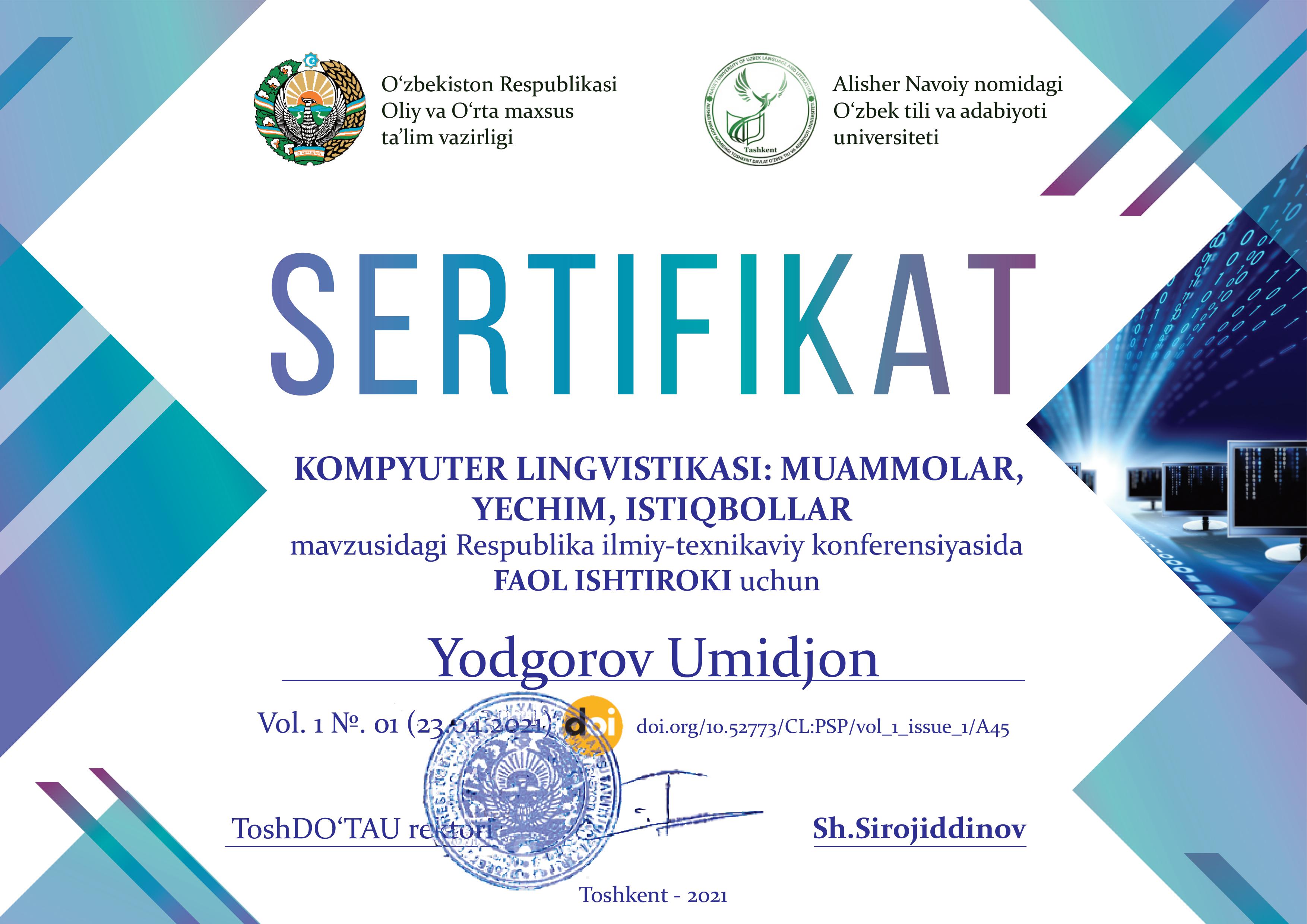 O`ZBEK TILI KORPUSI MATNLARINI QAYTA ISHLASH USULLARI