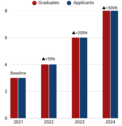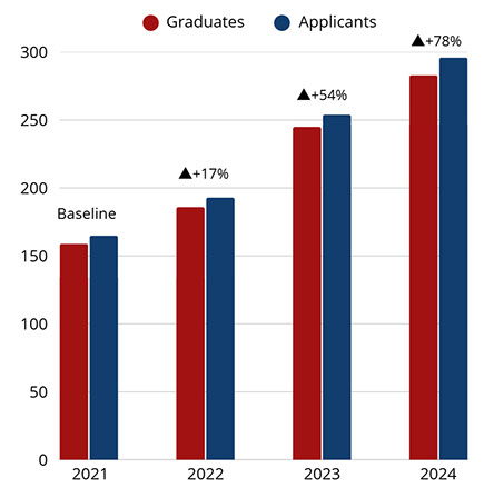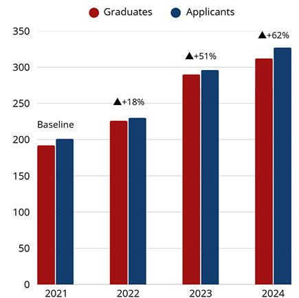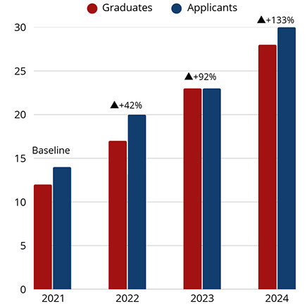 28 graduates with disabilities in 2024 mark a 133% increase since 2021, reflecting substantial progress in creating accessible learning environments and support systems.