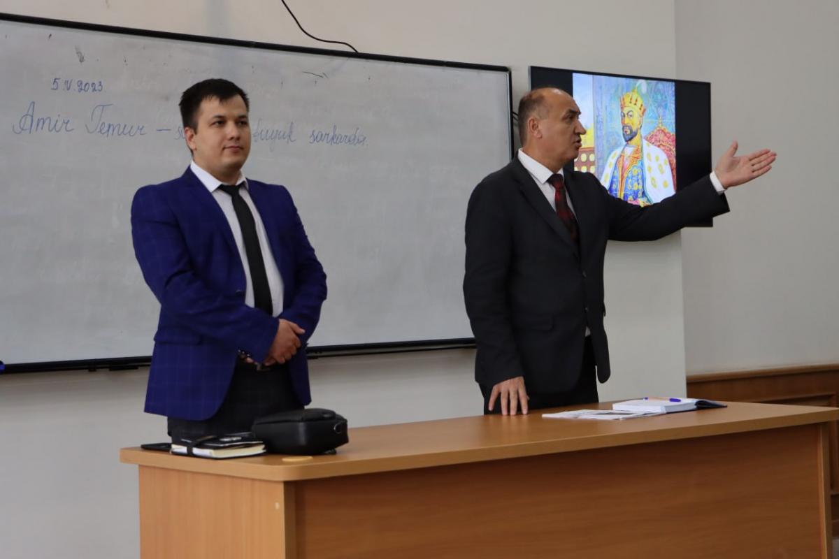 Shundan so'ng mashg'ulotning asosiy mavzusi bo'yicha ma'ruzalar tinglandi. “Amir Temur – sohibqiron, buyuk sarkarda” mavzusida mashg'ulotlar olib borildi. Amir Temur shaxsini idrok etish–tarixni idrok etish demakdir. Amir Temurni anglash–o‘zligimizni anglash demakdir. Amir Temurni ulug‘lash–tarix qa’riga chuqur ildiz otgan tomirlarimizga, madaniyatimizga, qudratimizga asoslanib, buyuk kelajagimizni, ishonchimizni mustahkamlash demakdir. Bugungi mashg'ulotda aynan shu masalalar haqida so'z yuritildi.