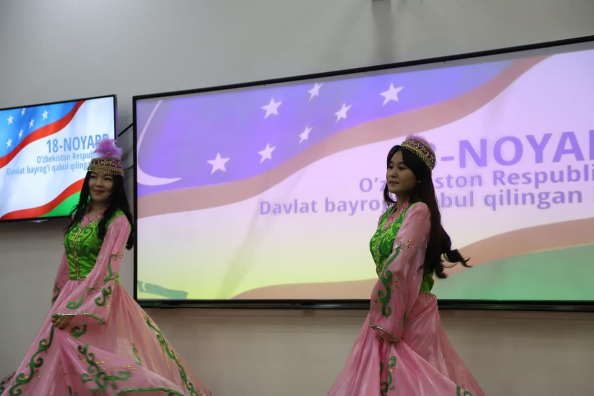 Tadbir davomida davlat bayrogʻining tarixiy ahamiyati, mustaqil Oʻzbekiston ramzi sifatida bayrogʻimizda aks etgan rang va belgilarning mazmuni hamda bu bayroq ostida erishilgan yutuqlar haqida so‘z bordi. Shuningdek, talabalar tomonidan tayyorlangan adabiy-badiiy chiqishlar va davlatimiz ramzlarini ulugʻlovchi musiqiy dasturlar namoyish etildi.