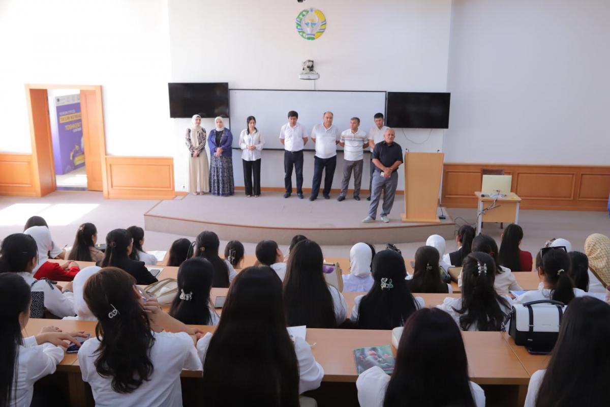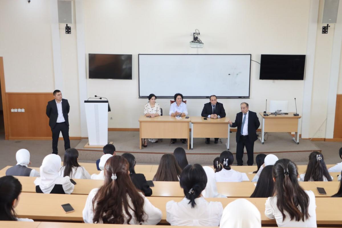 Ijtimoiy-gumanitar fanlar kafedrasi professor-o‘qituvchilari esa talabalarga kafedrada o‘qitiladigan asosiy fanlar, to‘garaklar, ijtimoiy tadqiqotlarga jalb etilish imkoniyatlari haqida so‘zlab berdilar. Uchrashuv davomida talabalar bilan erkin muloqot qilinib, ularning savollariga javob berildi.