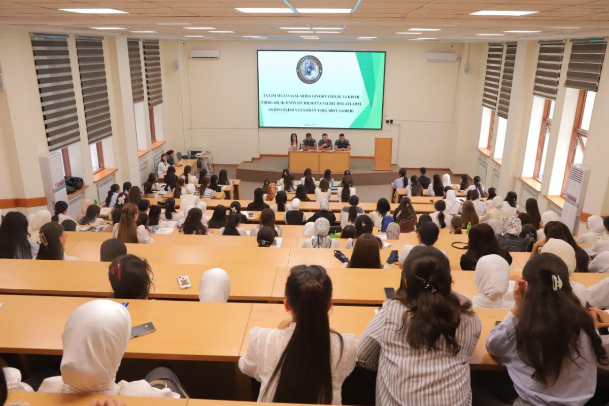 Universitetda tashkil etilgan uchrashuvda so‘zga chiqqan mutasaddilar giyohvandlikka qarshi kurashish jamiyat, xususan, yoshlar kelajagi uchun muhim ekanini ta’kidladilar. Tadbir davomida talabalarga sog‘lom turmush tarzini targ‘ib etish, giyohvandlikning salbiy oqibatlari haqida ogoh etish va huquqiy bilimlarni yanada oshirish yuzasidan tavsiyalar berildi. Yakunda mavzuga oid videorolik namoyish qilindi.