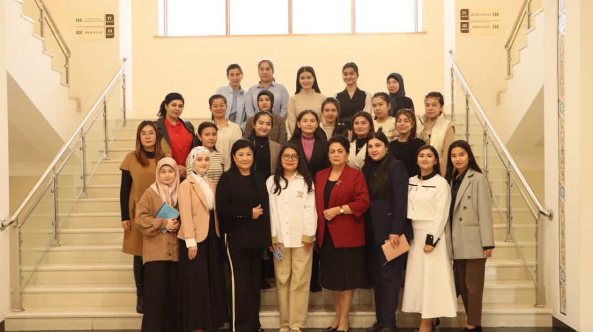 11-fevral Xalqaro ilm-fan sohasidagi ayollar va qizlar kuni munosabati bilan Alisher Navoiy nomidagi Toshkent davlat o‘zbek tili va adabiyoti universitetining “Yosh filolog olimlar jamiyati” tomonidan joriy yilning 13-fevral kuni talaba qizlar uchun “Ilmli qizlar - jamiyat ko‘zgusi” mavzusida ilmiy-ma’rifiy tadbir va mahorat darsi o‘tkazildi. Ushbu ilmiy-ma’rifiy tadbirda universitetimizning nomdor stipendiya sovrindori bo‘lgan, respublika, xalqaro miqyosda nufuzli tanlovlarda ishtirok etib, g‘olib bo‘lgan iqtidorli talaba qizlar – Navoiy nomli Davlat stipendiyasi sohibi Shohsanam Hazratqulova, Navoiy nomli Davlat stipendiyasi sohibi Sabina Berdiyeva, Islom Karimov nomli Davlat stipendiyasi sohibi Xulkaroy Rajapova o‘z tajribalari bilan o‘rtoqlashdilar. Mahorat darsi davomida talabalarga ilmiy, ijtimoiy faollikka erishish, ilmiy maqola yozish va uni chop ettirish, kelajakda Prezident va nomdor stipendiyalar sovrindori bo‘lish, ijodiy faollikni oshirish, a’lo baholarga o‘qish, respublika bo‘ylab o‘tkaziladigan nufuzli tanlovlar, xalqaro maydonga chiqish, xalqaro miqyosda o‘z sohasi bo‘yicha muvaffaqiyatlarni qo‘lga kiritish, xorijiy tillarni mukammal o‘rganish, va boshqa muhim masalalar yuzasidan dildan suhbat, jonli muloqot olib borildi. Ular o‘zlarini qiziqtirgan savollarga javob olishdi. Uchrashuv so‘nggida tadbir ishtirokchilari esdalik uchun suratga tushishdi.