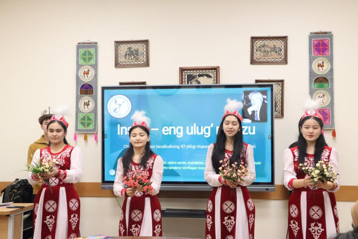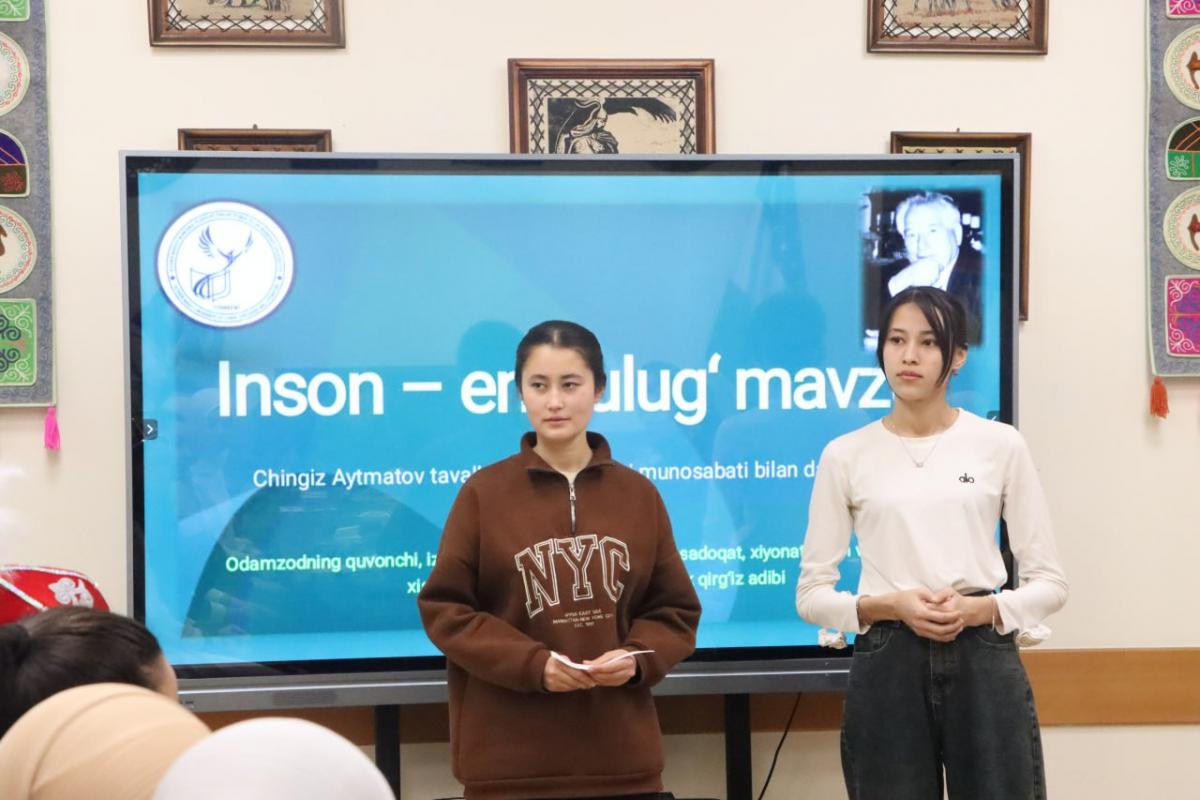 2025-yilning 12-dekabr kuni Alisher Navoiy nomidagi Toshkent davlat o‘zbek tili va adabiyoti universiteti qoshidagi Qirg‘iz tili va madaniyati markazi hamda O‘sh davlat universiteti huzuridagi O‘zbek tili va madaniyati markazi hamkorligida buyuk yozuvchi va jamoat arbobi Chingiz Aytmatov tavalludining 97 yilligi munosabati bilan “Inson – eng buyuk mavzu” nomli davra suhbati bo‘lib o‘tdi. Tadbirda ikki universitet professor-o‘qituvchilari va talabalari ishtirok etdilar.