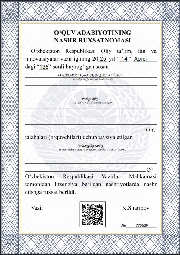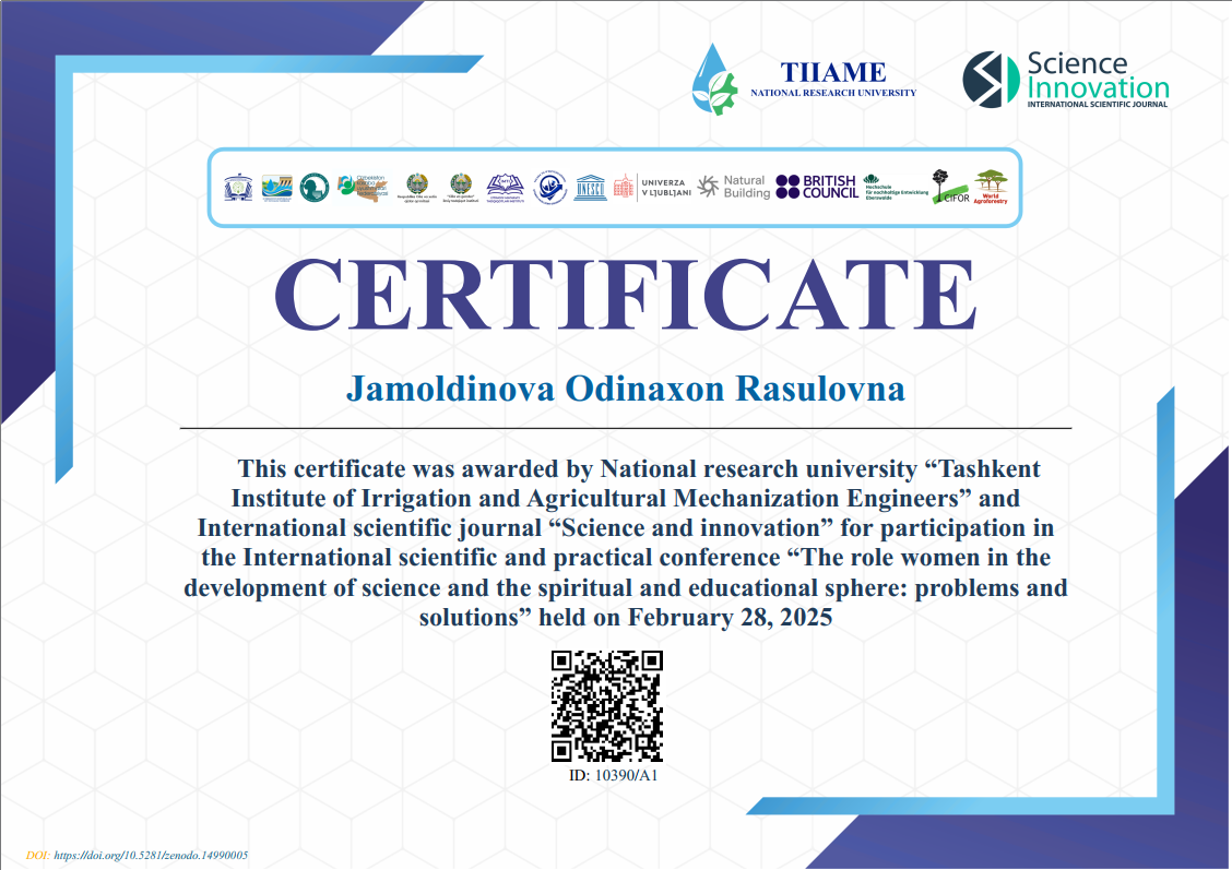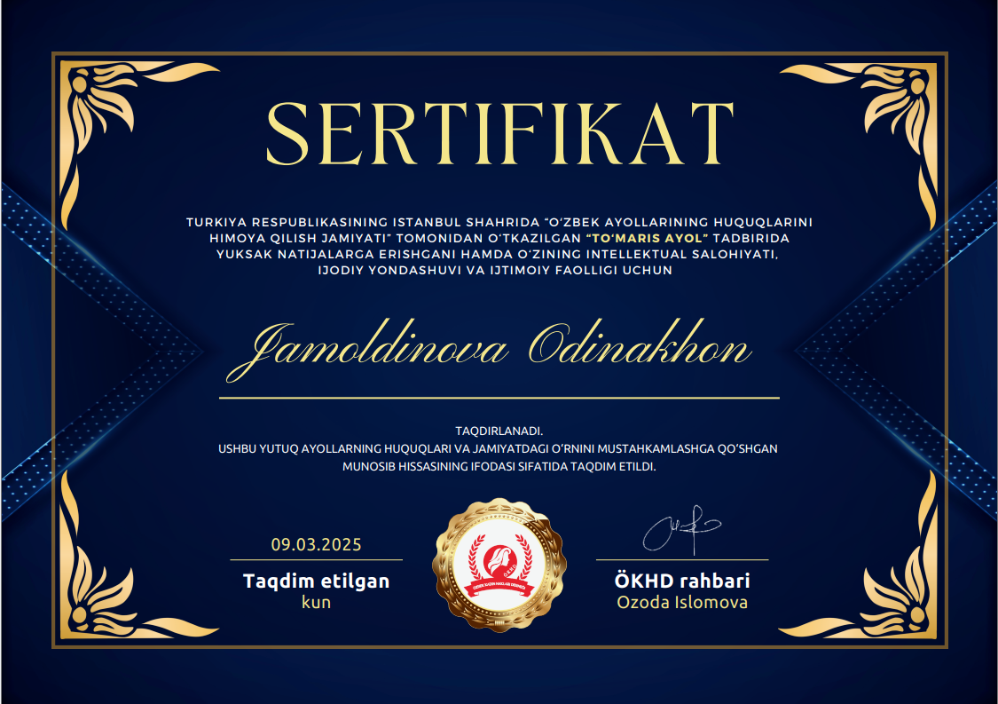 Jamoldinova Odinaxon Rasulovna