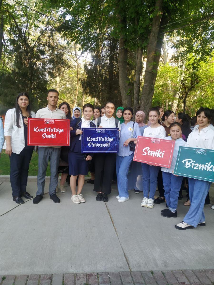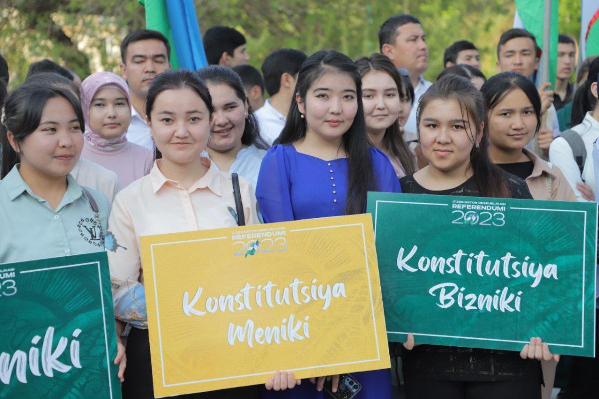 Ayni kunlarda, Respublikamiz bo‘ylab “Konstitutsiya meniki, seniki, bizniki! Konstitutsiya o‘zimizniki” shiori ostida konstitutsiyaviy qonun loyihasi bo‘yicha targ‘ibot tadbirlari tashkil etilmoqda.