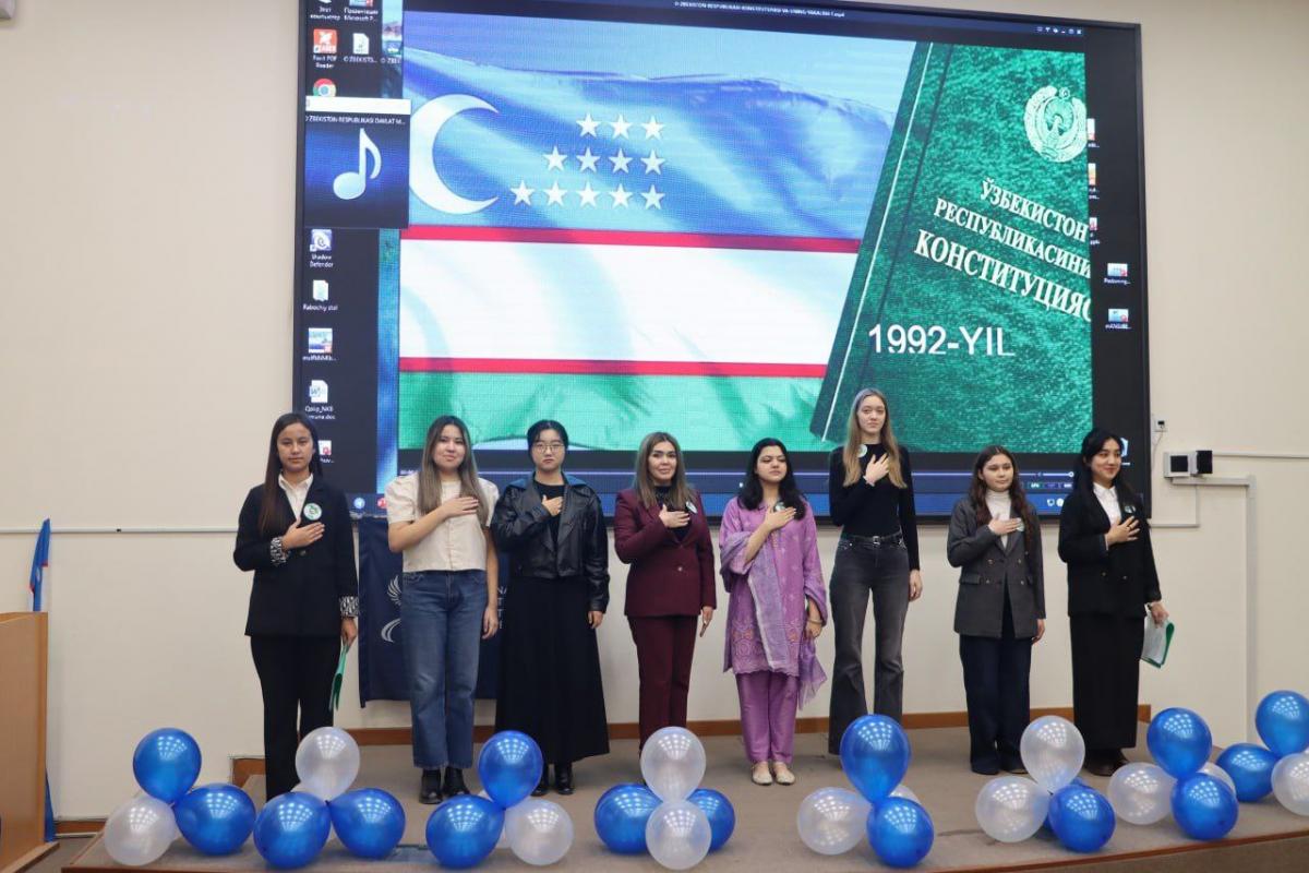 Tadbir davomida bir necha talabalar Konstitutsiya va davlat ramzlari haqida she’rlar va badiiy o‘qishlar bilan chiqish qilishdi. O‘zbek tilining davlat tili sifatidagi maqomi, davlat suvereniteti va qonun ustuvorligi haqida ijodiy ifodalangan she’rlar tinglovchilarni muxlislik bilan qarshi oldi. Bundan tashqari, talabalar tomonidan tayyorlangan videorolikda Konstitutsiyaning yoshlar hayotidagi ahamiyati, ularni qo‘llab-quvvatlashga qaratilgan moddalar zamonaviy vizual uslubda yoritildi.