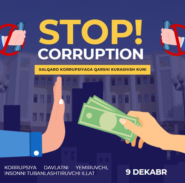 Korrupsiyaga qarshi kurash dunyo miqyosida bugungi kunning eng dolzarb masalalaridan bir boʼlib qolmoqda. Bu illatga qarshi kurash dunyoning koʼplab mamlakatlarini qamrab olmoqda. Oʼzbekiston Respublikasi ham korrupsiyaga qarshi kurashga oʼz hissasini qoʼshib kelmoqda. Hozirgi paytda respublikamizda korrupsiyaga qarshi kurash doirasida bir qator dasturlar qabul qilindi va ular boʼyicha keng qamrovli ishlar amalga oshirilib kelinmoqda.