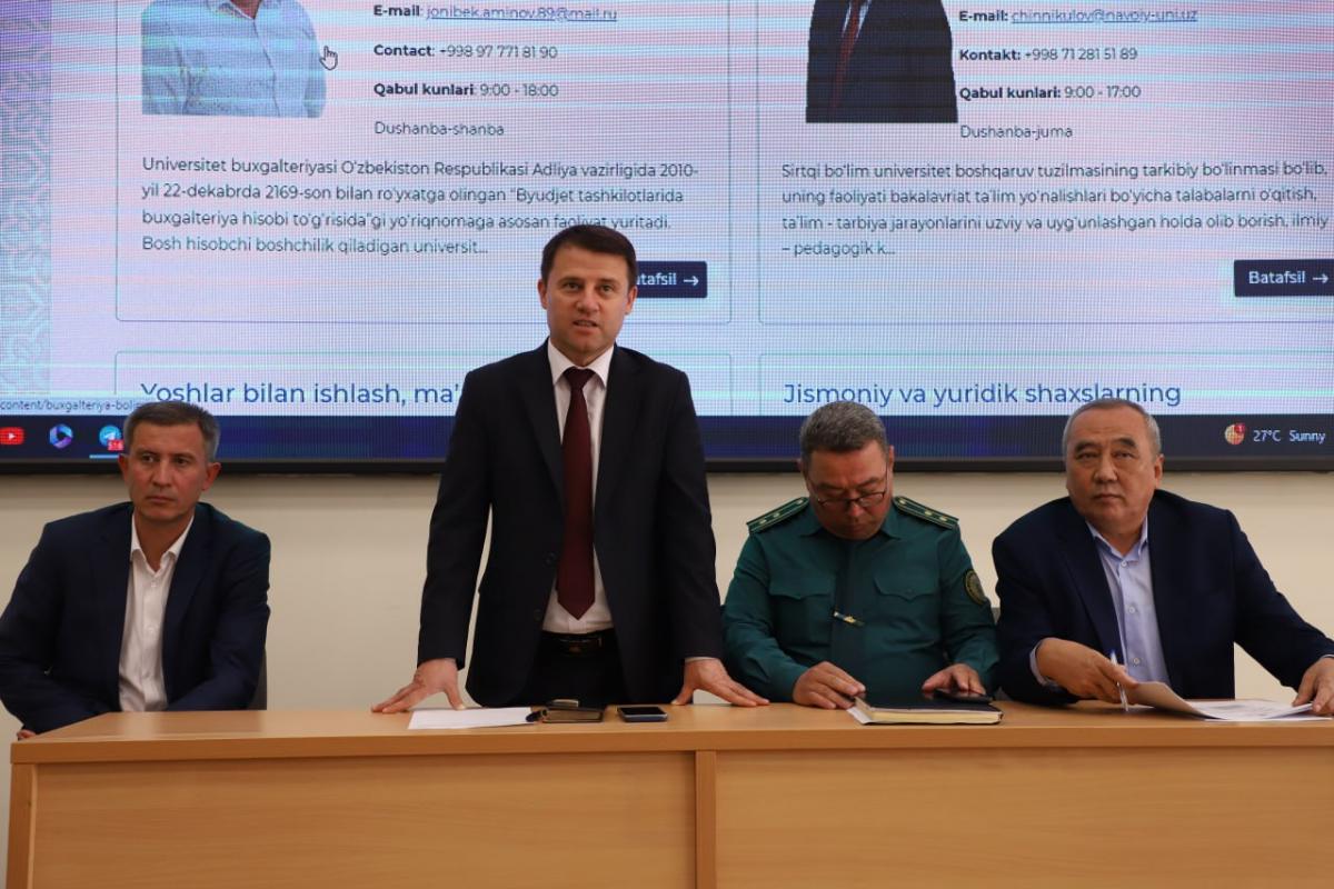 Joriy yilning 2-oktyabr kuni Alisher Navoiy nomidagi Toshkent davlat o'zbek tili va adabiyoti universitetida Masofaviy ta'lim shakliga qabul qilingan talabalar bilan uchrashuv bo'lib o'tdi. Uchrashuvda universitet o'quv ishlari bo'yicha prorektori S.Ermamatov, Korrupsiyaga qarshi kurashish “Komplayens-nazorat” tizimini boshqarish bo‘limi boshlig'i A.Nasriddinov, Masofavit ta'lim kafedrasi mas'ullari talabalarga o'quv jarayoni, ta'lim-tarbiya tizimi haqida ma'lumot berishdi. Korrupsiyaga qarshi kurashish “Komplayens-nazorat” tizimini boshqarish bo‘limi boshlig'i A.Nasriddinov Oliy ta'lim, fan va innovatsiyalar vazirligining "Korrupsiyasiz soha" loyihasi doirasida universitetda "Korrupsiya taraqqiyot kushandasi !" mavzusida suhbat o'tkazdi. Tadbirda O'quv ishlari bo'yicha prorektor S.Normamatov, masofaviy ta'lim fakulteti dekani N.Chinniqulov, universitet profilaktika inspektori, podpolkovnik M.Qurbonovlar ishtirok etishdi. Tadbir didavomida Oʻzbekiston Respublikasining "Korrupsiyaga qarshi kurashish toʻgʻrisida"gi Qonuni va uning mazmun-mohiyati haqida hamda mamlakatimizda korrupsiyaga qarshi kurashish borasida amalga oshirilayotgan islohotlar to'g'risida ma'lumotlar berib oʻtildi. uchrashuv yakunida talabalarni qiziqtirgan savollariga javoblar berildi.