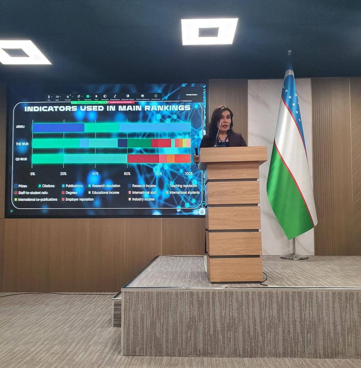 Nozliya Normurodovaning ta’kidlashicha, O‘zbekiston oliy ta’limi jadal o‘zgarayotgan xalqaro ta’lim makoniga moslashish jarayonida sifat kafolati tizimini institutsional darajada mustahkamlash, ilmiy faoliyat va ta’lim jarayonini uyg‘unlashtirish, reytingli indikatorlar bilan ishlashni tizimlashtirish hamda o‘zini o‘zi baholash madaniyatini kuchaytirish asosiy ustuvor yo‘nalishlardan biridir. Uning ma’ruzasi OTM rahbarlari, HERE jamoalari, xalqaro nashriyotlar va ilmiy axborot platformalari vakillari tomonidan katta e’tibor bilan tinglandi.
