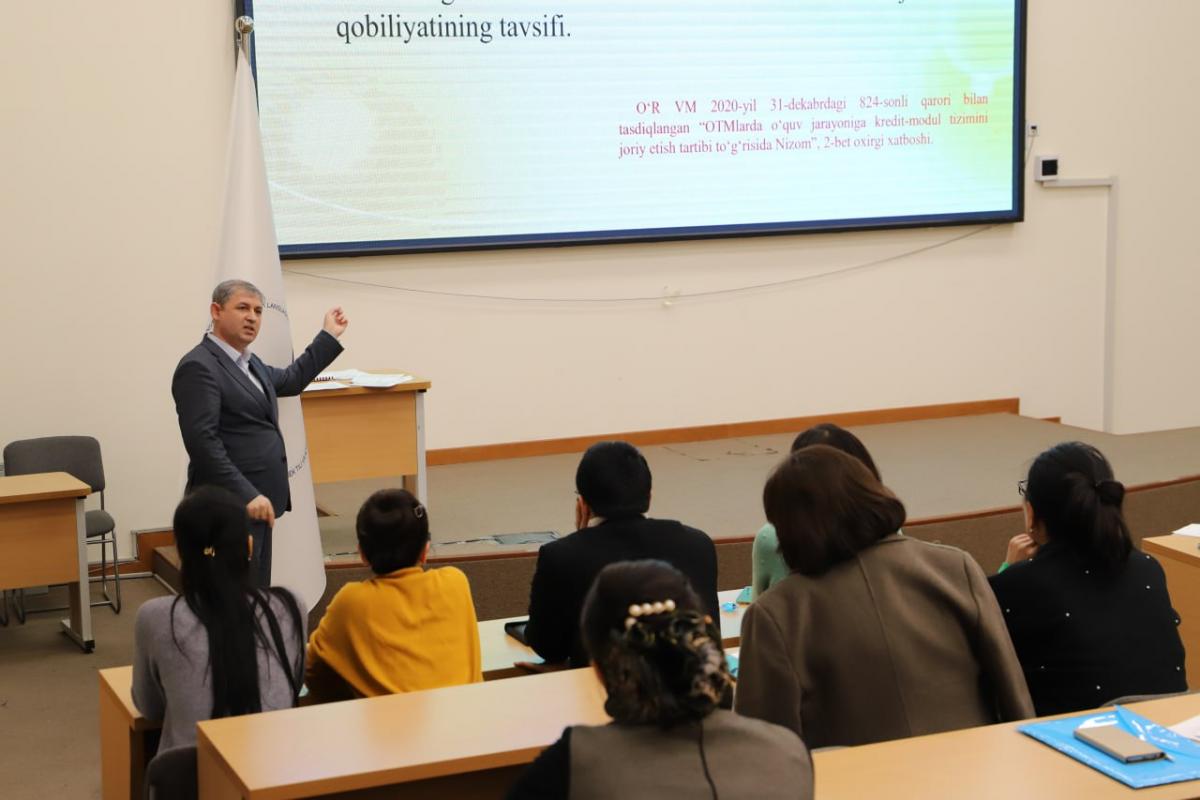 professor-o'qituvchilar tomonidan tuzilgan o‘quv dasturlarida yo‘l qo‘yilayotgan kamchiliklar va ularni bartaraf qilish yo‘llari ko‘rsatib o‘tildi. Bundan tashqari, kredit olish tartibi, kasbiy kompetensiyalarga asosan baholash mezonlarining ishlab chiqilishi haqida ham ma'lumotlar aytib o‘tildi.