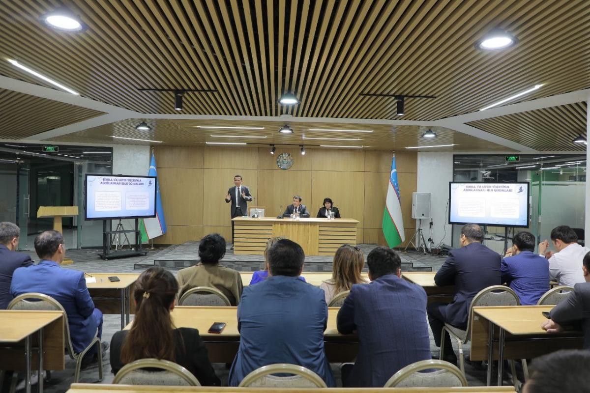 Unda Alisher Navoiy nomidagi Toshkent davlat o‘zbek tili va adabiyoti universiteti professori, filologiya fanlari doktori Zulxumor Xolmanova hamda mazkur universitet huzuridagi Davlat tilida ish yuritish asoslarini o‘qitish va malaka oshirish markazi bo‘lim boshlig‘i O‘rinboy Boboyorov o‘z ma’ruzalari bilan ishtirok etdi.