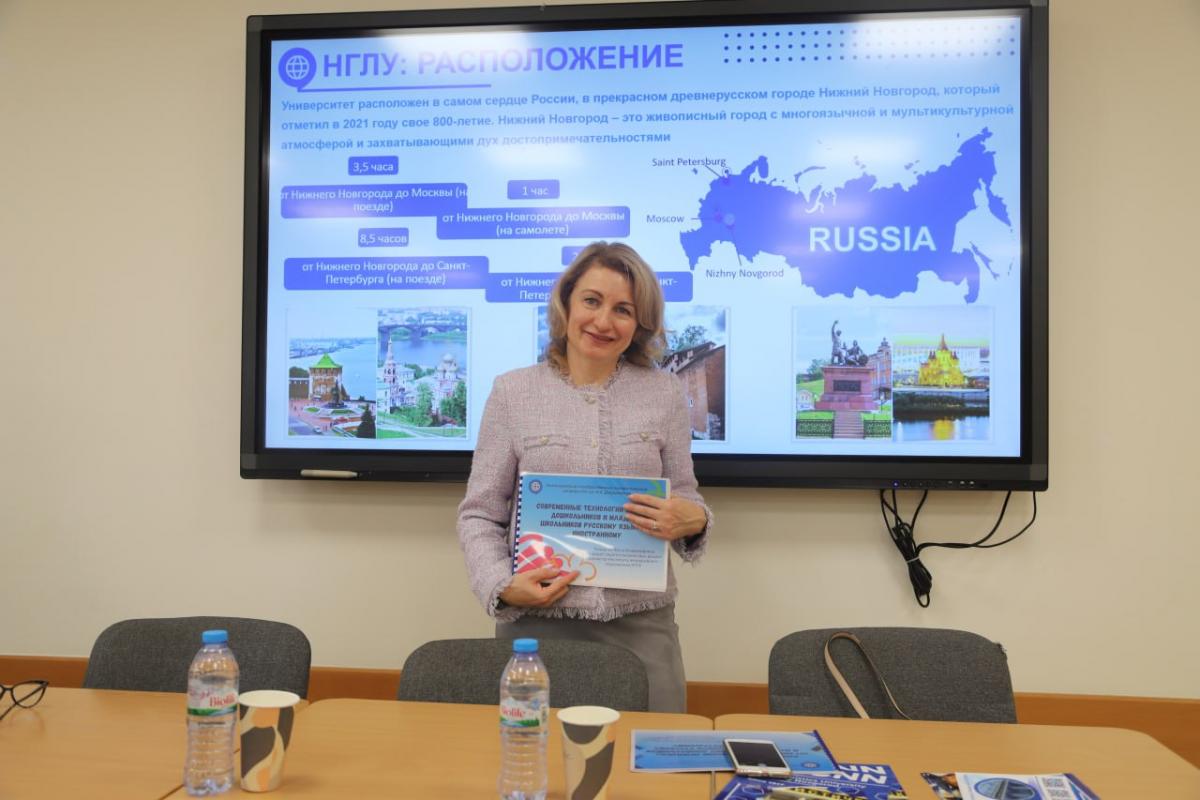 Joriy yilning 29-noyabr kuni Alisher Navoiy nomidagi Toshkent davlat o‘zbek tili va adabiyoti universitetiga Nijniy Novgorod davlat lingvistika universiteti dotsenti, filologiya fanlari nomzodi Yuliya Chicherina tashrif buyurdilar. Mazkur tashrif doirasida universitet professor-o‘qituvchilari va talabalari uchun mahorat darsi tashkil etildi. Yuliya Vladimirovna xorijiy tillarning o‘qitilishidagi asosiy masalalari, o‘qituvchi va talaba o‘rtasidagi psixologik yondoshuvlar haqida so‘z yuritdi. Professor-o‘qituvchilar va talabalar qiziqtirgan savollariga javob olishdi. Bu universitet o‘qituvchilari uchun o‘ziga xos tajriba almashinuvi bo‘ldi. Xorijiy tillar kafedrasi mudiri Nargiza Rashidova qiziqarli mahorat darsi uchun xorijlik mutaxassisga universitet rahbariyati va professor-o‘qituvchilar nomidan minnatdorchilik bildirdi.