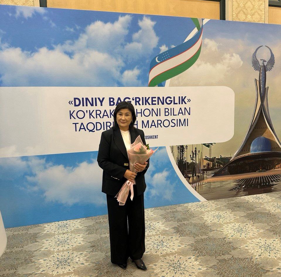 Ushbu marosimda Alisher Navoiy nomidagi Toshkent davlat o‘zbek tili va adabiyoti universitetining Yoshlar masalalari va ma’naviy-ma’rifiy ishlar bo‘yicha birinchi prorektori, Respublika targ‘ibot guruhi a’zosi Gulnoza Jo‘rayeva “Diniy bag‘rikenglik” ko‘krak nishoni bilan taqdirlandi. Mazkur mukofot u kishining yoshlar ongida bag‘rikenglik, totuvlik, o‘zaro hurmat va fuqarolik mas’uliyatini mustahkamlash yo‘lidagi izchil sa’y-harakatlari, ma’naviy-ma’rifiy yo‘nalishdagi faol tashabbuslari hamda targ‘ibot ishlaridagi samarali ishtiroki uchun berildi.