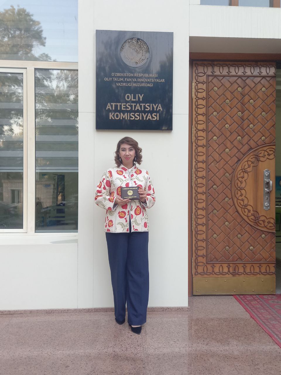 24.09.2025 yil Oliy attestatsiya komissiyasi tomonidan taqdim etilgan diplomni Rektorimiz Sh.Sirojiddinov tomonidan tantanali topshirilib, kelgusidagi ilmiy va oilaviy faoliyatida zafarlar tilab qoldilar.