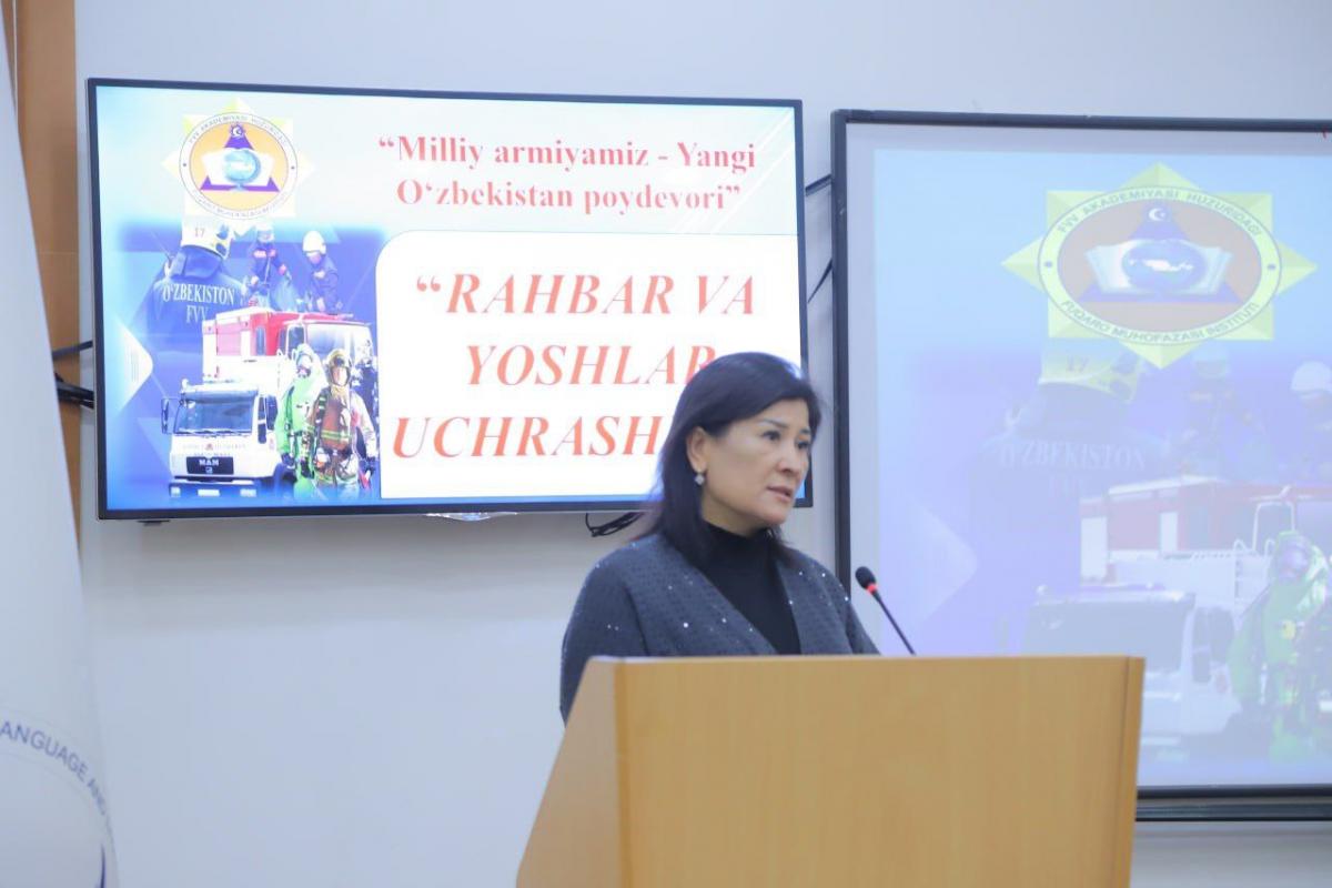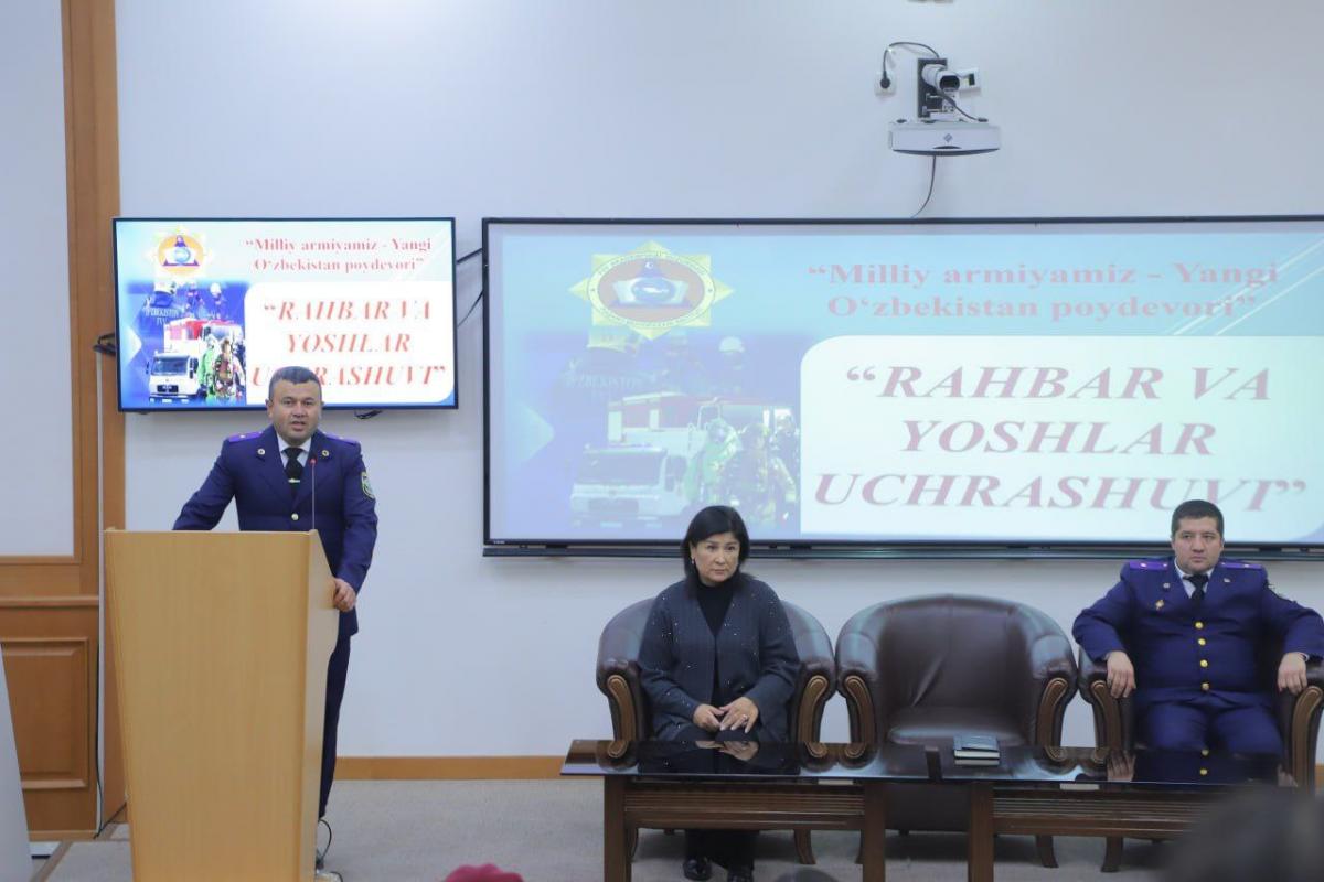 Joriy yilning 22-dekabr kuni Alisher Navoiy nomidagi Toshkent davlat o‘zbek tili va adabiyoti universitetida Fuqaro muhofazasi instituti rahbar va xodimlari ishtirokida “Rahbar va yoshlar” mavzusida muhim uchrashuv bo‘lib o‘tdi. Mazkur tadbir yoshlar bilan ochiq muloqotni yo‘lga qo‘yish, ularning vatanparvarlik ruhini yuksaltirish hamda milliy armiyamizning jamiyat hayotidagi o‘rni haqida tushunchalarni mustahkamlashga qaratildi.