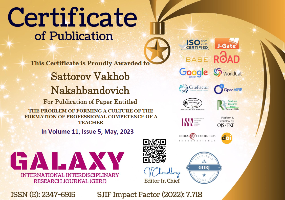 THE PROBLEM OF FORMING A CULTURE OF THE FORMATION OF PROFESSIONAL COMPETENCE OF A TEACHER