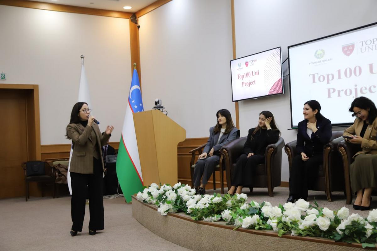 2024-yil 23-oktabr kuni Alisher Navoiy nomidagi Toshkent O‘zbek tili va adabiyoti universitetida “Yosh xotin-qizlarni qo‘llab-quvvatlash, ularning jamiyatdagi rolini oshirish” mavzusidagi uchrashuv bo‘lib o‘tdi. Tadbirning maqsadi yosh xotin-qizlarni rivojlantirish, ularning jamiyatdagi o‘rnini kuchaytirish va tadbirkorlik qobiliyatlarini oshirishdan iborat. Tadbirda O‘zbekiston Respublikasi Yoshlar ishlari agentligi direktorining birinchi o‘rinbosari Dilnoza KATTAXANOVA, Oliy Majlis Qonunchilik palatasi huzuridagi Yoshlar parlamenti raisi Shahnoza JOLDASOVA, “Qizlar akademiyasi” loyihasi menedjeri Ruhsora SHAKIROVAlar ishtirok etdilar. Uchrashuv davomida spikerlar yosh talaba qizlarga kerakli bilimlar va ko‘nikmalarni taqdim etish uchun bir qator qiziqarli va interaktiv ma'ruzalar o‘tkazadilar. Har bir spiker o‘z sohasidagi tajribasini va bilimini o‘rtoqlashib, ishtirokchilarga amaliy misollar keltirdi.