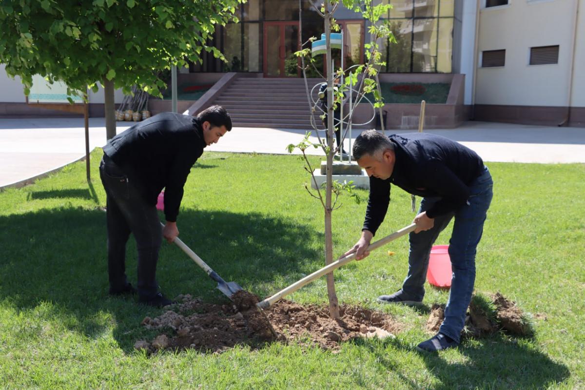 Bu daraxtlar tez orada o'sib-unib, universitetimiz hovlisidagi toza va rohatbaxsh havoni ta'minlaydi. Salqinida talabalar kitob o'qiydi.