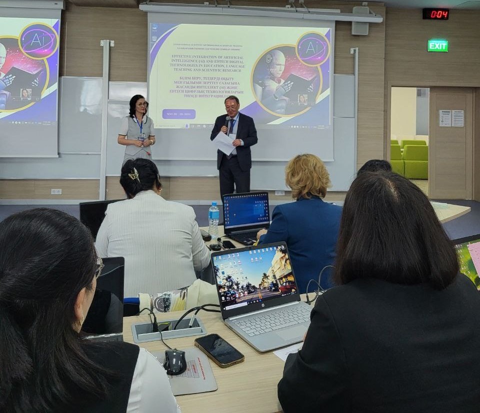 Universitetimiz olimlari dunyoning turli nuqtalarida bo'lib o'tayotgan turli ilmiy anjumanlarda faol ishtirok etib kelmoqda. Xususan, kuni kecha Qozog'istonning mashhur Nazarbaev universitetida bo‘lib o‘tayotgan xalqaro seminar-treningda Ona tili va adabiyot ta'limi fakulteti dekani Marg‘uba Abdullayeva, tayanch doktorant Iroda Umarovalar ishtirok etishmoqda. "Sun‘iy intellekt va raqamli texnologiyalarning ta‘lim va til o‘qitish, ilmiy tadqiqotlar sohasida samarali integratsiyasi" mavzusidagi seminarda xalqaro mutaxassislar jalb etilgan. Ushbu xalqaro seminar-treningda oliy ta‘limda sun‘iy intellekt va raqamli texnologiyalarning o'rni, ulardan til o‘qitishda samarali foydalanish bo‘yicha amaliy ko‘nikmalar berildi. Miro.com platformasi, video materiallar tayyorlashda -invideo AI, taqdimot tayyorlaydigan dasturlar hamda ChatGPT haqida nazariy-metodik bilimlarni o'rgandik. Seminar turli davlatlardan ishtirok etayotgan professor-o‘qituvchilar uchun samarali bo'ldi. Kunning ikkinchi yarmida Ona tili ta‘limi kafedrasi tayanch doktoranti Irodaxon Umarovaning ma'ruzasi seminar ishtirokchilarida katta taassurot qoldirdi. Sun‘iy intellekt dasturlari bo‘yicha nazariy ma'lumotlar hamda shu dasturlarni til o‘qitishda amaliy jarayonda qo‘llab bergani bilan dolzarblik kasb etdi.
