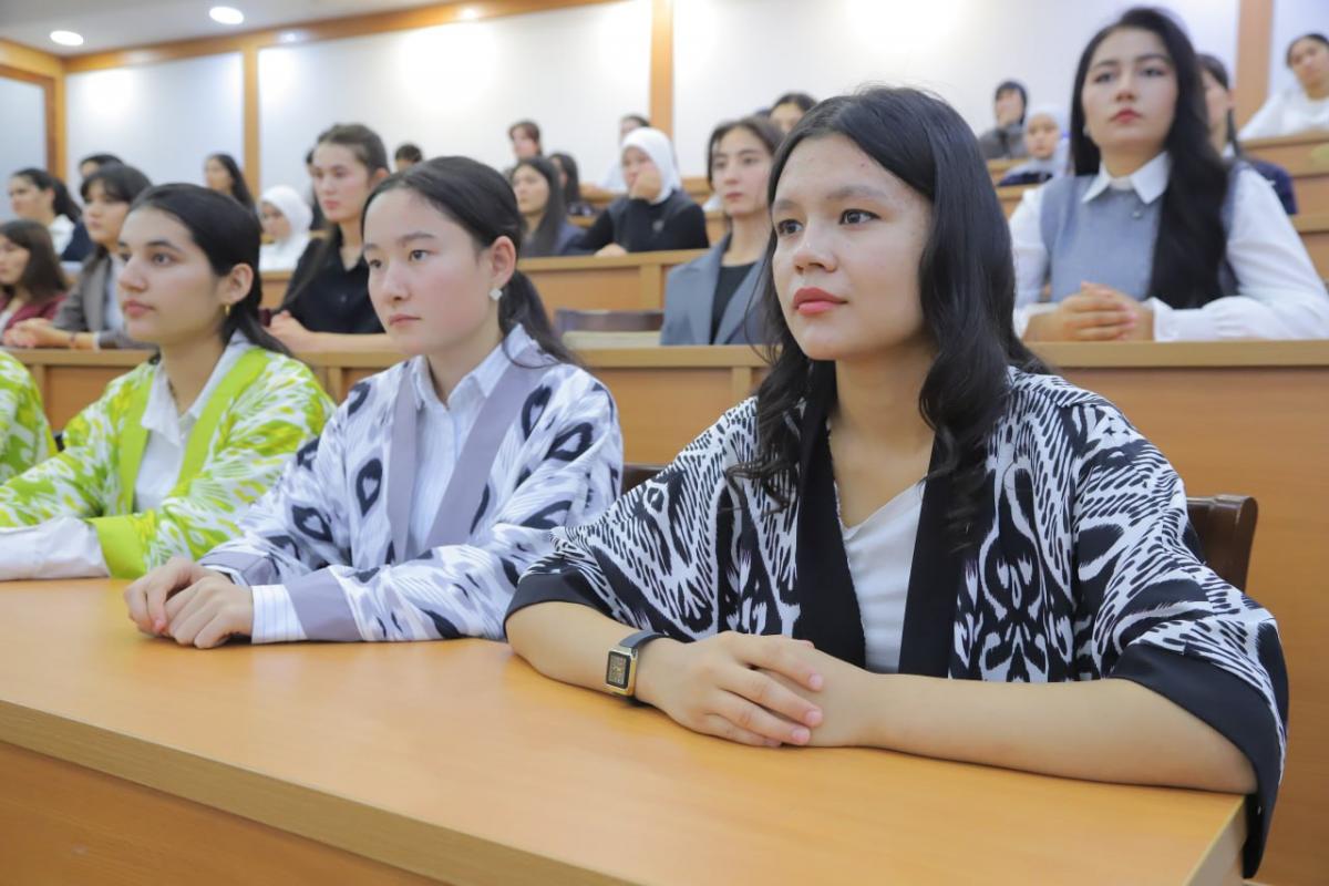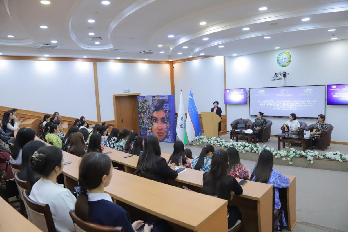Uchrashuvda Oila va xotin-qizlar qo‘mitasi bo‘lim boshlig‘i Raxima Mirholiqova, qo‘mita yetakchi mutaxassisi Nargiza Yunusova, “Oila va xotin-qizlar” ilmiy-tadqiqot instituti direktori o‘rinbosari, professor Oynisa Musurmanova, O‘zbekiston Milliy kutubxonasi direktori Umida Teshabayeva, shoira Nodirabegim Ibrohimova ishtirok etdilar. Tadbir davomida ishtirokchilar yoshlarning, ayniqsa qizlarning ma’naviy olami, ijtimoiy faolligi va ijodiy salohiyatini rivojlantirish masalalarida o‘z fikr va tajribalari bilan o‘rtoqlashdilar. Talaba qizlar o‘z ijod namunalari bilan ishtirok etib, mehmonlarga savollar yo‘lladilar.