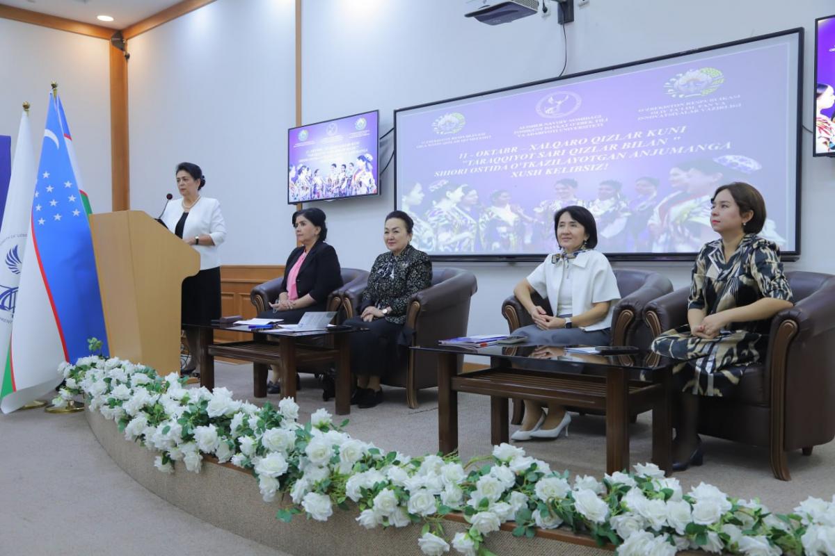 11-oktabr — Xalqaro qizlar kuni munosabati bilan Alisher Navoiy nomidagi Toshkent davlat o‘zbek tili va adabiyoti universitetida “Taraqqiyot sari qizlar bilan!” nomli uchrashuv o‘tkazildi. Tadbir Oila va xotin-qizlar qo‘mitasi hamda universitet hamkorligida tashkil etildi.