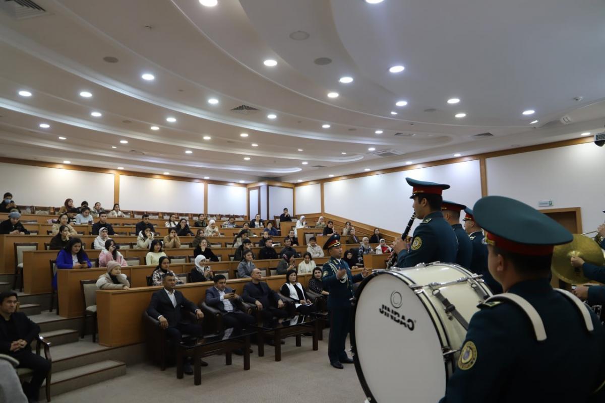 Universitetimizda 2024-yilning 10-yanvar kuni Oʻzbekiston Respublikasi Qurolli Kuchlari tashkil etilganligining 34 yilligi hamda Vatan himoyachilari kunini nishonlash maqsadida tantanali konsert bo'lib o'tdi. Konsert tashkilotchisi O’zbekiston Respublikasi “Qorovul qo’shinlari “ namunali ko’rgazmali orkestri bo'lib, ular universitetimiz pedagogik jamoasi hamda talabalarini bayram bilan tabriklashdi.