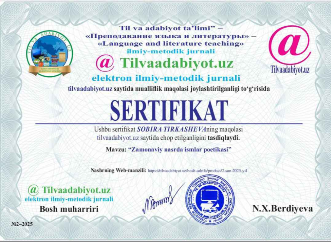 JDPI qoshidagi 2 - son Akademik litseyi ona tili va adabiyoti o‘qituvchisi