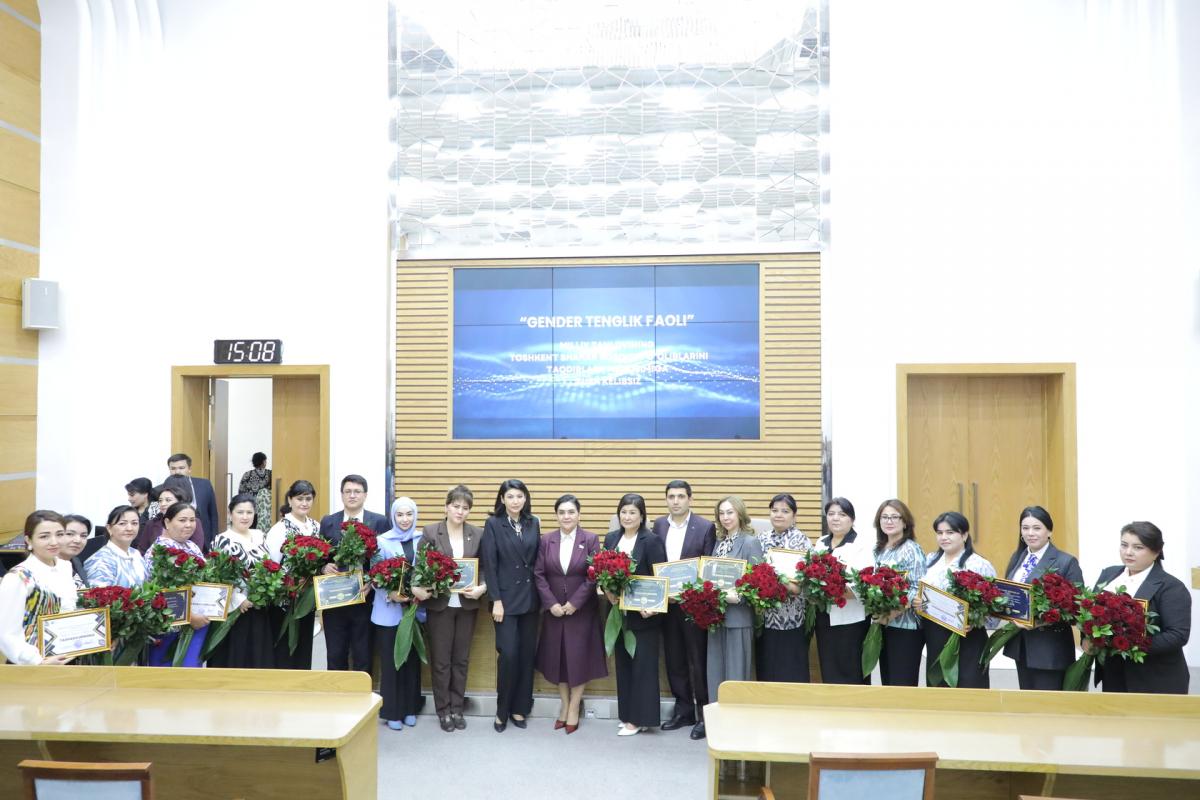 Bugun Toshkent shahar hokimligida “Gender tenglik faoli” milliy tanlovining shahar bosqichi g‘oliblari taqdirlandi.