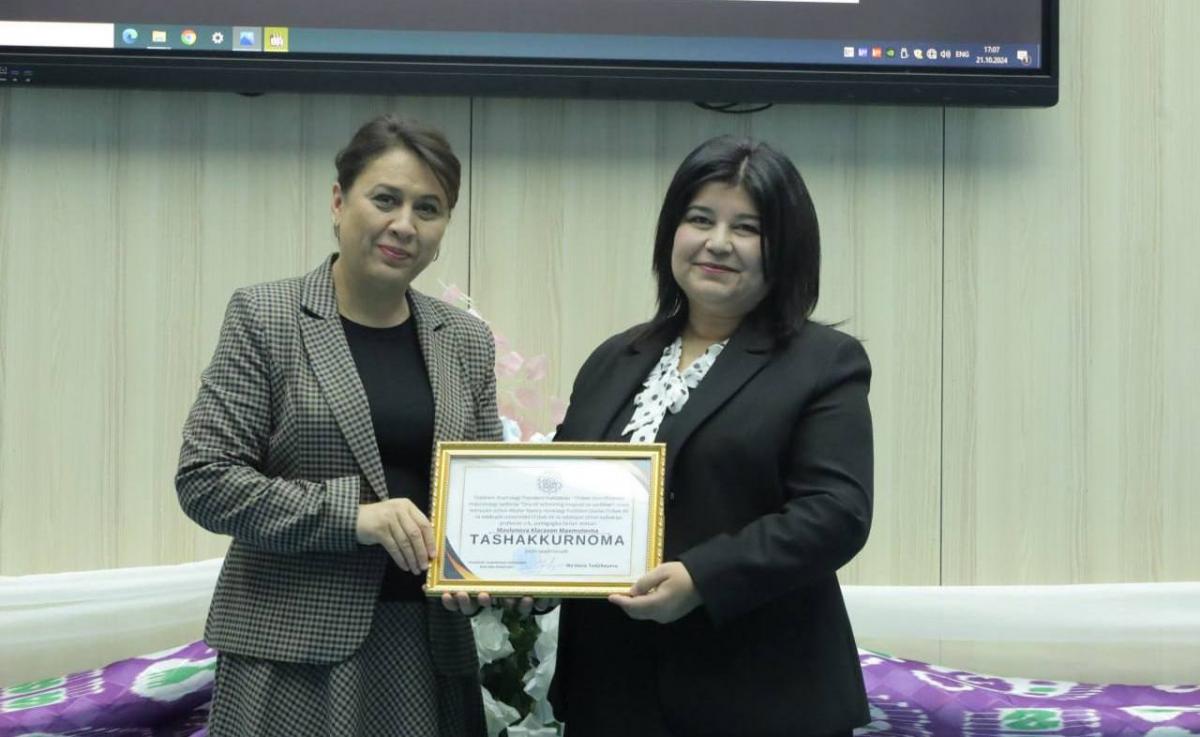 21-oktabr kuni Mikrokredit band bosh ofis xodimlari uchun “Qadring baland bo‘lsin, ona tilim” mavzusida maʼnaviy-maʼrifiy tadbir tashkil etildi. Ushbu tadbirda universitetimiz professori, Filologiya fanlari doktori Uzoq Jo‘raqulov ishtirok etdi. Tadbirda o‘zbek tilining ahamiyati, har bir inson o‘z ona tilini bilishi, uni kelajak avlodga yetkazishda oiladagi maʼnaviy muhitning ahamiyati to‘g‘risida fikr-mulohazalar bildirildi.