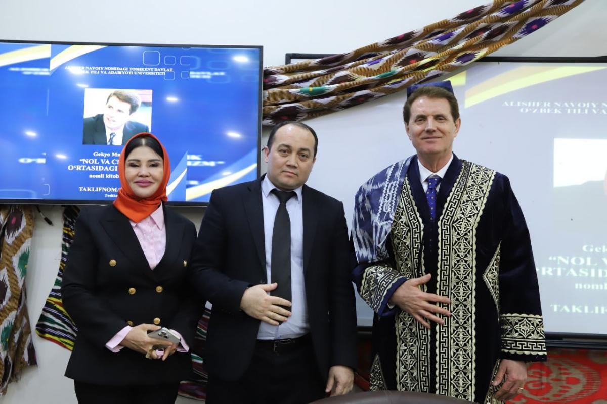 2025-yil 5-mart kuni Alisher Navoiy nomidagi Toshkent davlat o‘zbek tili va adabiyoti universitetida taniqli alban-amerikalik shoir, yozuvchi va munaqqid Gekyo Marinay bilan ijodiy uchrashuv bo‘lib o‘tdi. Tadbir universitetning Tarjima nazariyasi va amaliyoti kafedrasi hamda “Kitob dunyosi” gazetasi hamkorligida tashkil etildi. Tadbirni universitet Ilmiy ishlar va innovatsiyalar bo‘yicha prorektori, filologiya fanlari doktori, professor Nozliya Normurodova ochib berdi. Shundan so‘ng, O‘zbekiston Yozuvchilar uyushmasi raisi maslahatchisi, shoir Salim Ashur, filologiya fanlari doktori, professor Suvon Meli, filologiya fanlari doktori, professor, Jahon adabiyoti va qiyosiy adabiyotshunoslik kafedrasi mudiri Uzoq Jo‘raqulov, yozuvchi va dramaturg Qo‘chqor Norqobil, “Kitob dunyosi” gazetasi bosh muharriri, shoira Xosiyat Rustamova, filologiya fanlari nomzodi, Tarjima nazariyasi va amaliyoti kafedrasi dotsenti Qosimboy Ma’murov, filologiya fanlari nomzodi, O‘zbekiston Milliy universiteti dotsenti Xurshida Jalilova hamda filologiya fanlari bo‘yicha falsafa doktori, O‘zbek tili, adabiyoti va folklori instituti ilmiy xodimi Barchin Shukurova so‘zga chiqib, o‘z fikr-mulohazalarini bildirdilar. Tadbir davomida Gekyo Marinay o‘zining “Nol va cheksizlik o‘rtasidagi protonizm” nomli yangi kitobi haqida so‘z yuritdi. U kitob yozilish jarayoni, undagi asosiy g‘oyalar va falsafiy mushohadalar xususida batafsil ma’lumot berdi. Ishtirokchilar yozuvchi bilan ochiq muloqot qilib, o‘zlarini qiziqtirgan savollariga javob olishdi. Uchrashuv universitet talabalari, professor-o‘qituvchilari hamda adabiyot va tarjima sohasiga qiziquvchilar uchun mazmunli va foydali bo‘ldi. Tadbir yakunida muallif kitobining imzoli nusxalarini taqdim etdi.