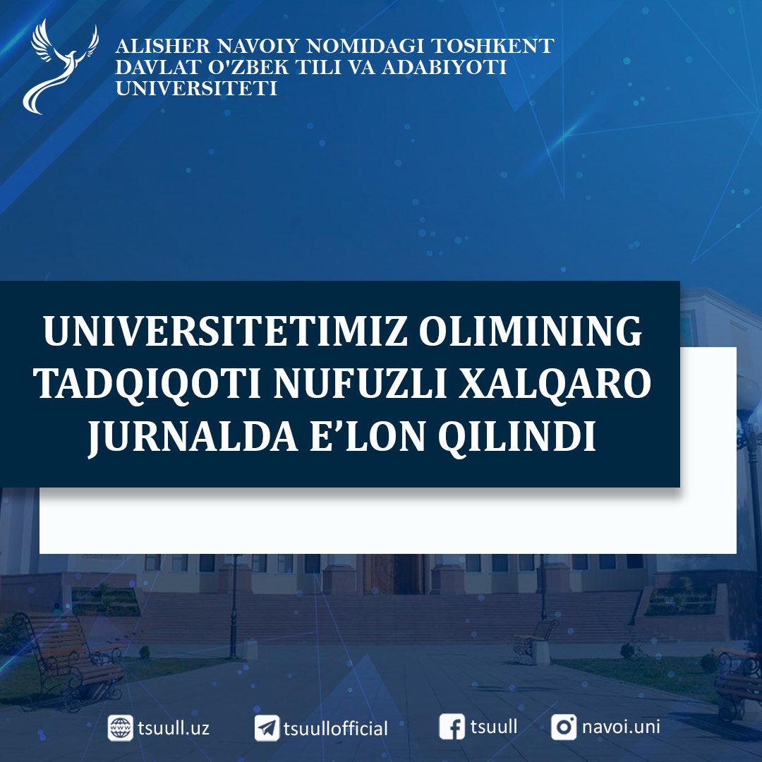 30 Oct 2025 27.10.2025 Universitetimiz olimining tadqiqoti nufuzli xalqaro jurnalda e’lon qilindi Batafsil