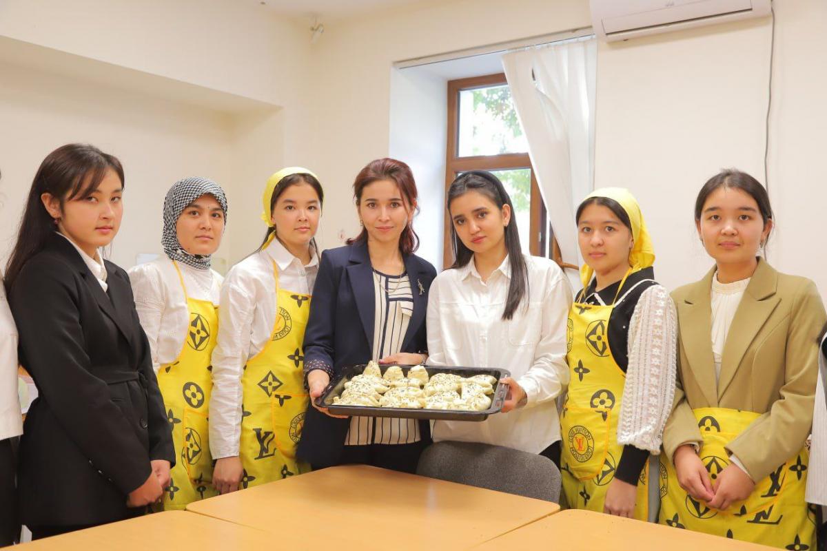 Pazandachilik yo‘nalishida talaba qizlar milliy taomlar, jumladan, somsa tayyorlash bo‘yicha o‘z mahoratlarini namoyon etdilar. Mashg‘ulot davomida pazandalik sir-asrorlari o‘rganilib, ishtirokchilar o‘zaro tajriba almashdilar. Ushbu faoliyat nafaqat amaliy ko‘nikmalarni shakllantirdi, balki milliy qadriyatlarni asrash va targ‘ib etishga xizmat qildi.