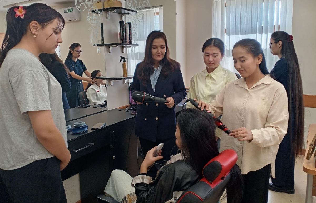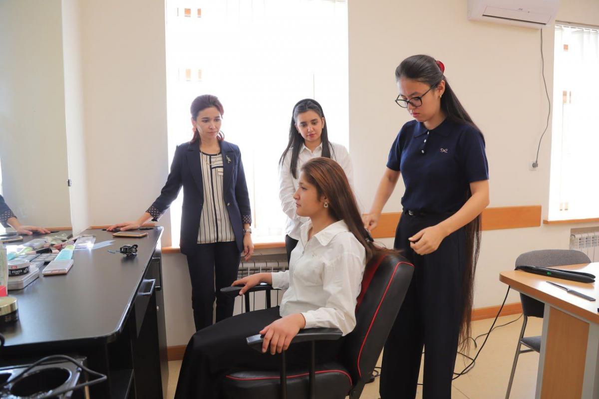 Go‘zallik saloni to‘garagida soch turmaklash, yuz parvarishi hamda makiyaj bo‘yicha amaliy mashg‘ulotlar o‘tkazildi. Talabalar zamonaviy va milliy uslubdagi ko‘rinishlar yaratish jarayonida go‘zallik san’atining nozik jihatlarini o‘rganish imkoniga ega bo‘ldilar.