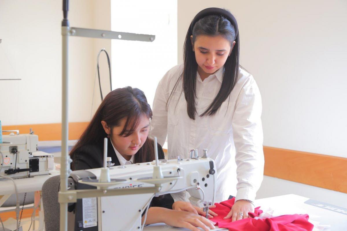 Tikuvchilik mashg‘ulotlarida libos tikish, mato tanlash va naqsh tushirish bo‘yicha darslar olib borildi. Talabalar o‘z ijodiy qarashlarini namoyon etish barobarida dizayn va amaliy san’at sohasidagi yangi bilimlarga ega bo‘ldilar.