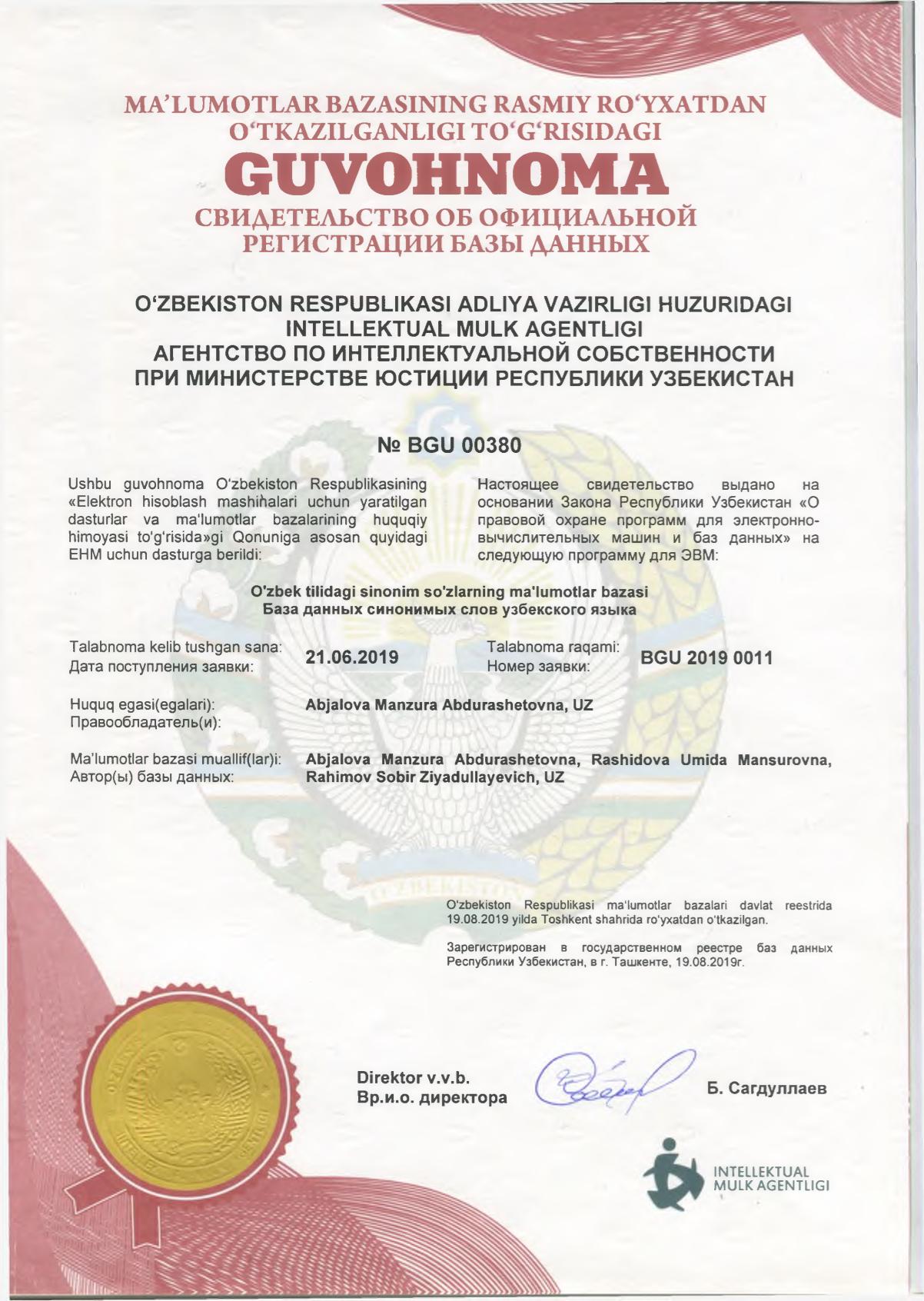 ADJECTIVES FOR UZBEK THESAURUS DICTIONARY THE ISSUE OF BASE CREATION