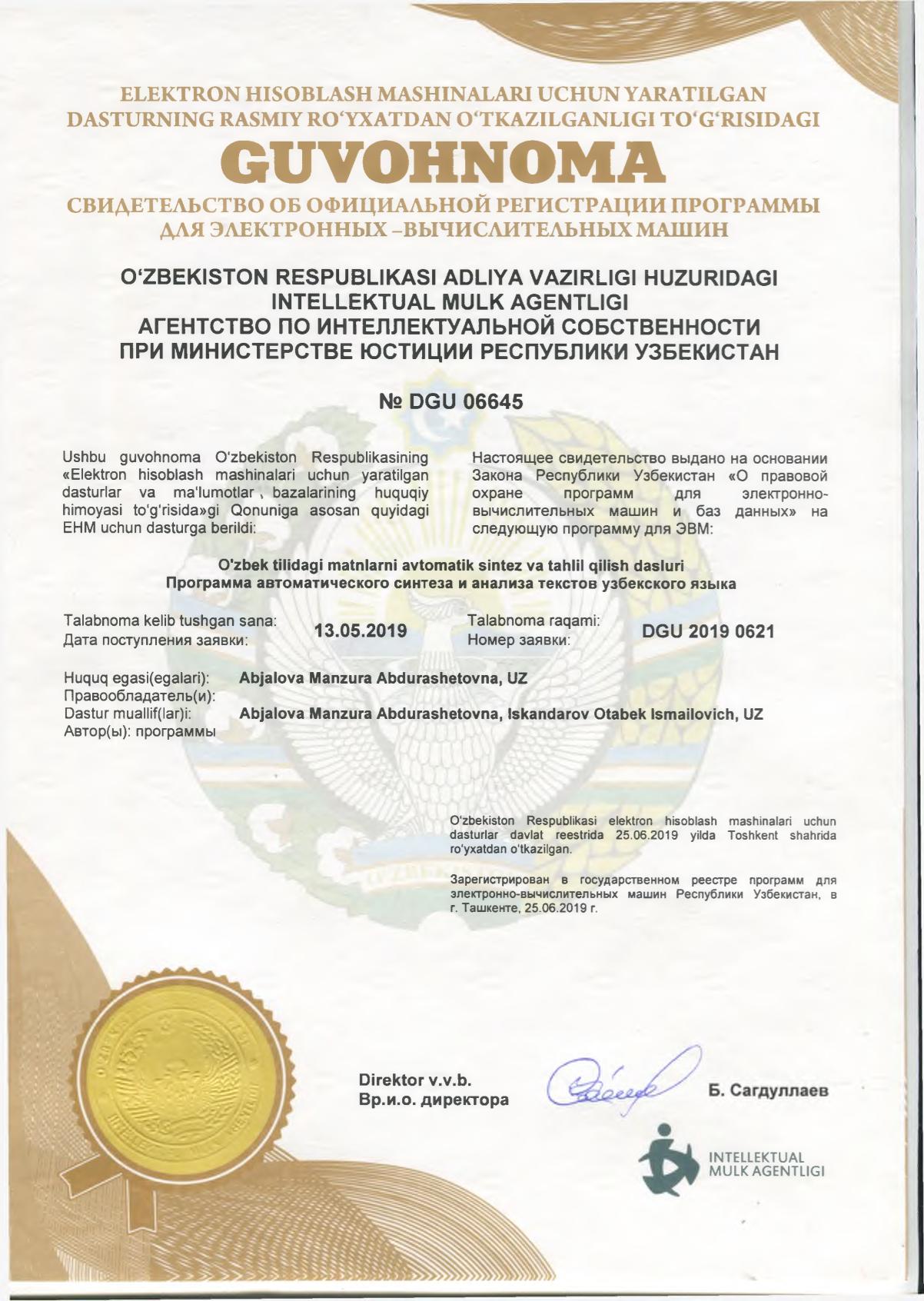 AUTOMATIC MORPHOLOGICAL ANALYSIS UZBEK LANGUAGE